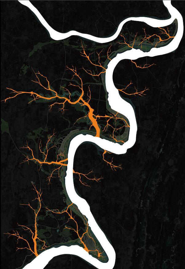 邁柏提出“季節(jié)性使用”的理念,在春夏長(zhǎng)江水位較低,將珊瑚壩打造為臨時(shí)活動(dòng)空間;保留場(chǎng)地的文化記憶,展示具有創(chuàng)新性的歷史載體;同時(shí)藝術(shù)化布置燈帶,打造重慶城市夜景新的觀賞點(diǎn)。