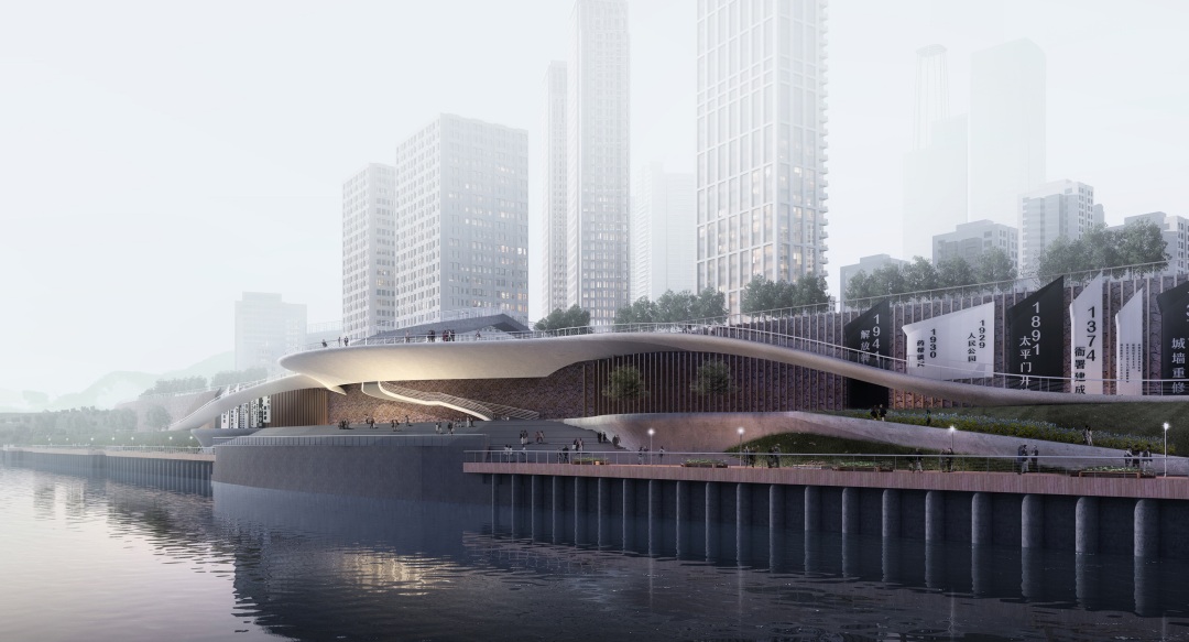 東水門水岸沿線將形成立體游覽休閑體系,并以長(zhǎng)坡道連接上下空間形成不間斷慢跑道。在水岸最外側(cè)形成彈性空間供季節(jié)性使用的同時(shí),利用儲(chǔ)奇門碼頭改造形成新銳藝術(shù)時(shí)尚公園,為渝中區(qū)提供親子互動(dòng)等多元化戶外空間。