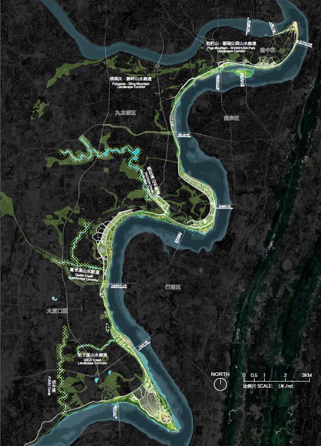 項(xiàng)目以“重回長(zhǎng)江 - 讓濱江成為城市發(fā)展主軸”為愿景,以“黃葛樹精神 - 重慶,超強(qiáng)生命力之源”為設(shè)計(jì)理念,提出“山水相連,自然重回”;“縫合城市,步行重回”;“文化休閑、心理重回”;“顯山露水,山城重回”四大策略,讓城市生活“重回長(zhǎng)江”。