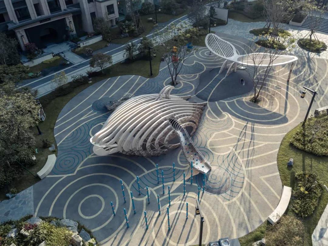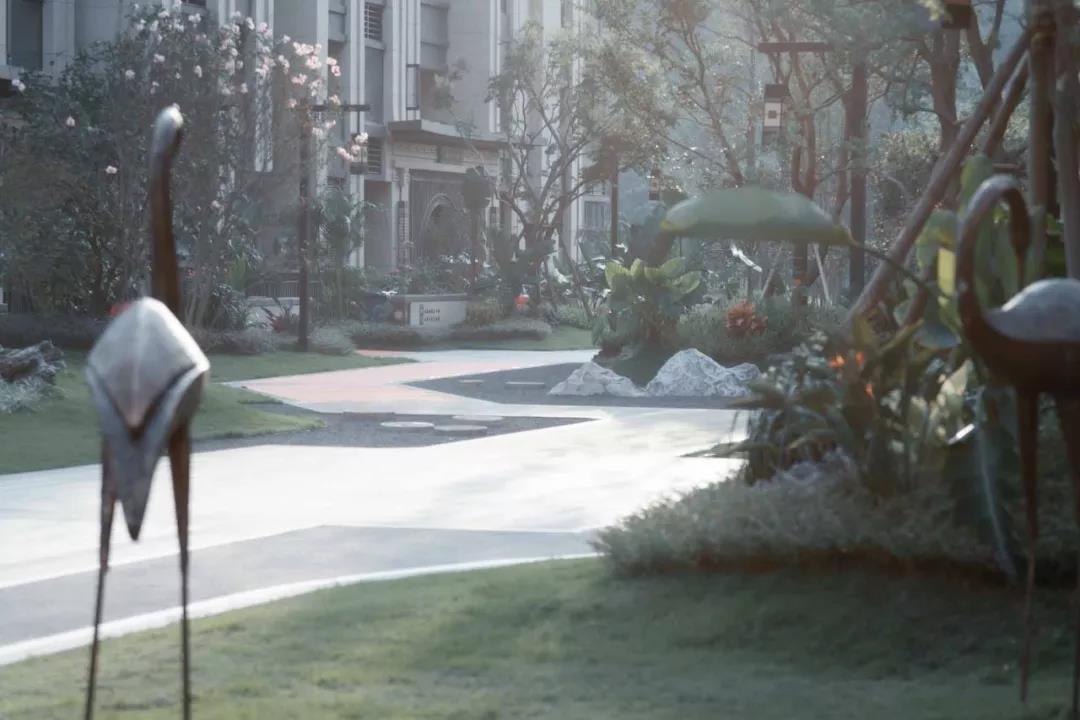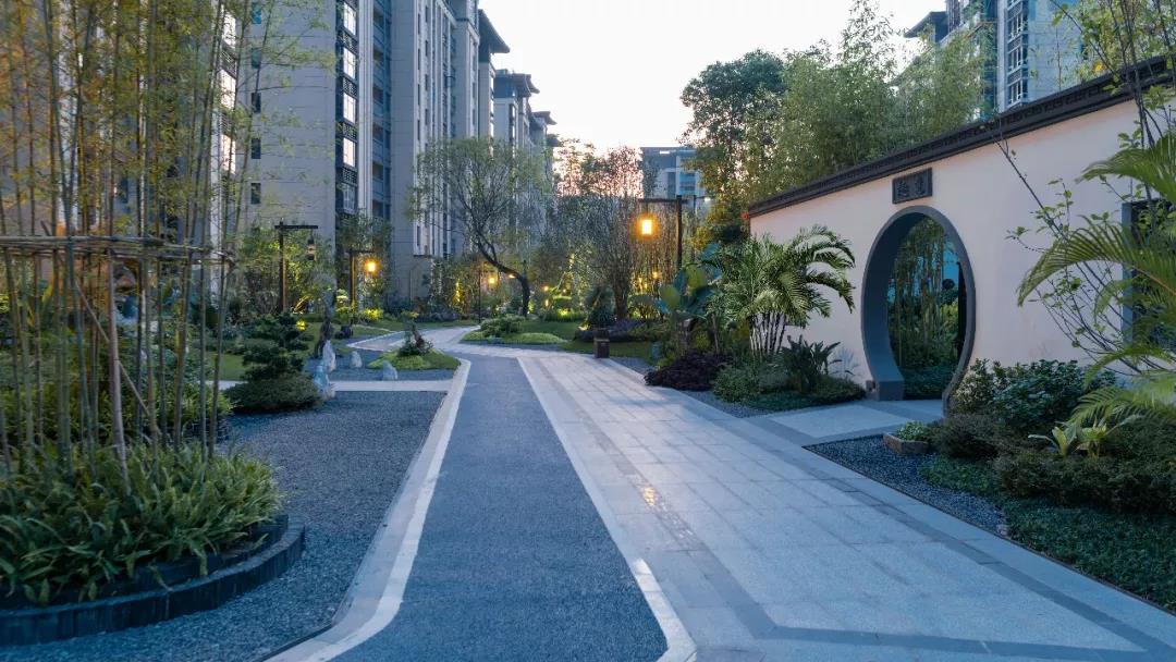 碧水如青玉,石山如玲瓏,綠樹婆娑,宅間院落與架空層景觀結(jié)合設(shè)計,格局形制,提供鄰居間的互動交流場所,讓每個人在這里回歸生活最初的美好。
