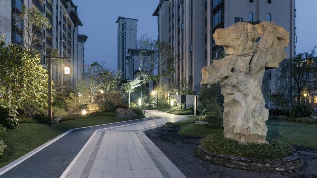 設(shè)計過程中,根植于燕城文脈,師法江南,營造室外燕城的山水意蘊。我們將中式傳統(tǒng)文化“山”與“水”元素提煉成現(xiàn)代化的景觀語言,融合燕城記憶的文化棲居,創(chuàng)造出“居塵而出塵”的城市山水園林居住環(huán)境。