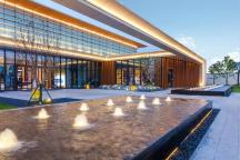取山之形,倚水之勢(shì),造待客之勢(shì),營修養(yǎng)之境。用疊水塑造山水意境,軸線式設(shè)計(jì)手法,凸顯建筑氣勢(shì)。