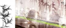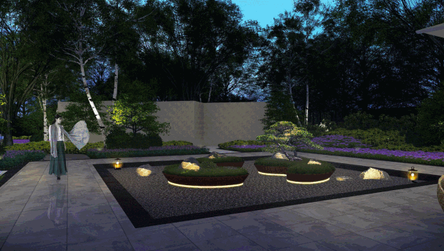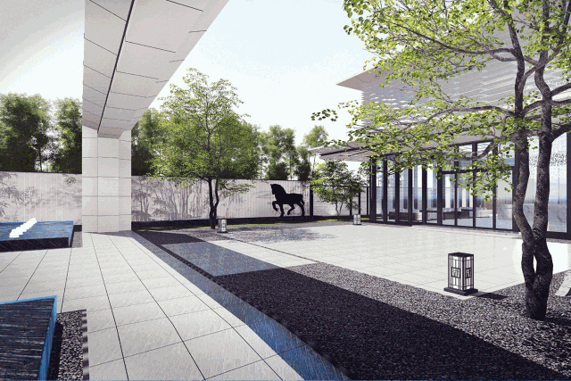 以翠竹為伴,與青風(fēng)為鄰,用半透明的景墻,與竹種植相結(jié)合,營造遠(yuǎn)山煙竹的情境。
