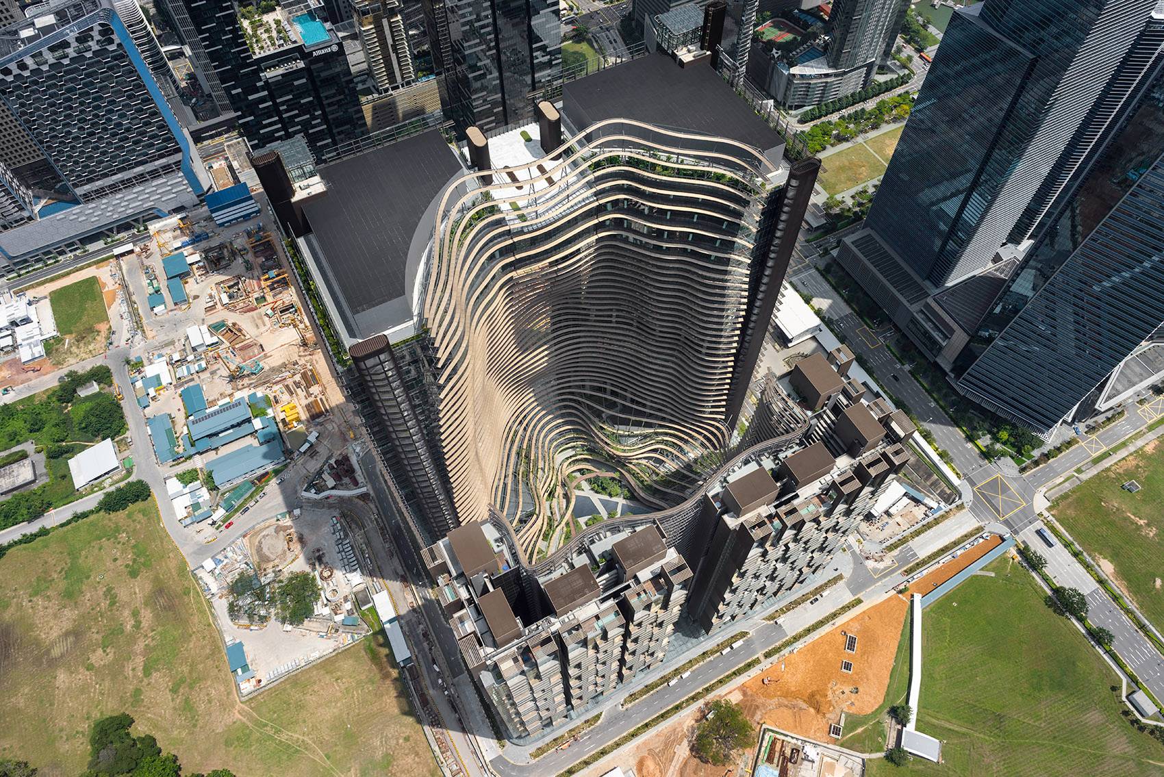 濱海盛景是一個(gè)國(guó)際化的居住和辦公綜合體,它的落成促進(jìn)了各大城市,尤其是熱帶城市之間的良性交流,在人口增長(zhǎng)和氣候變化的背景下,這些城市面臨著諸多挑戰(zhàn)。這座高密度的多功能綜合體占地40萬(wàn)平方米,由四座高層建筑組成,其內(nèi)部包含一個(gè)擴(kuò)展至多層的公共空間,即“綠色之心”。這座立體的綠洲反映出熱帶風(fēng)情所具有的多樣性特征。濱海盛景的四座高層建筑包含辦公、住宅和零售等多種功能,并獲得綠色建筑白金獎(jiǎng)以及LEED的白金級(jí)認(rèn)證。其中,兩棟辦公樓各自包含17.5萬(wàn)平方米的使用面積;兩棟住宅樓則包含1042間公寓和套間,可供3000人居住。