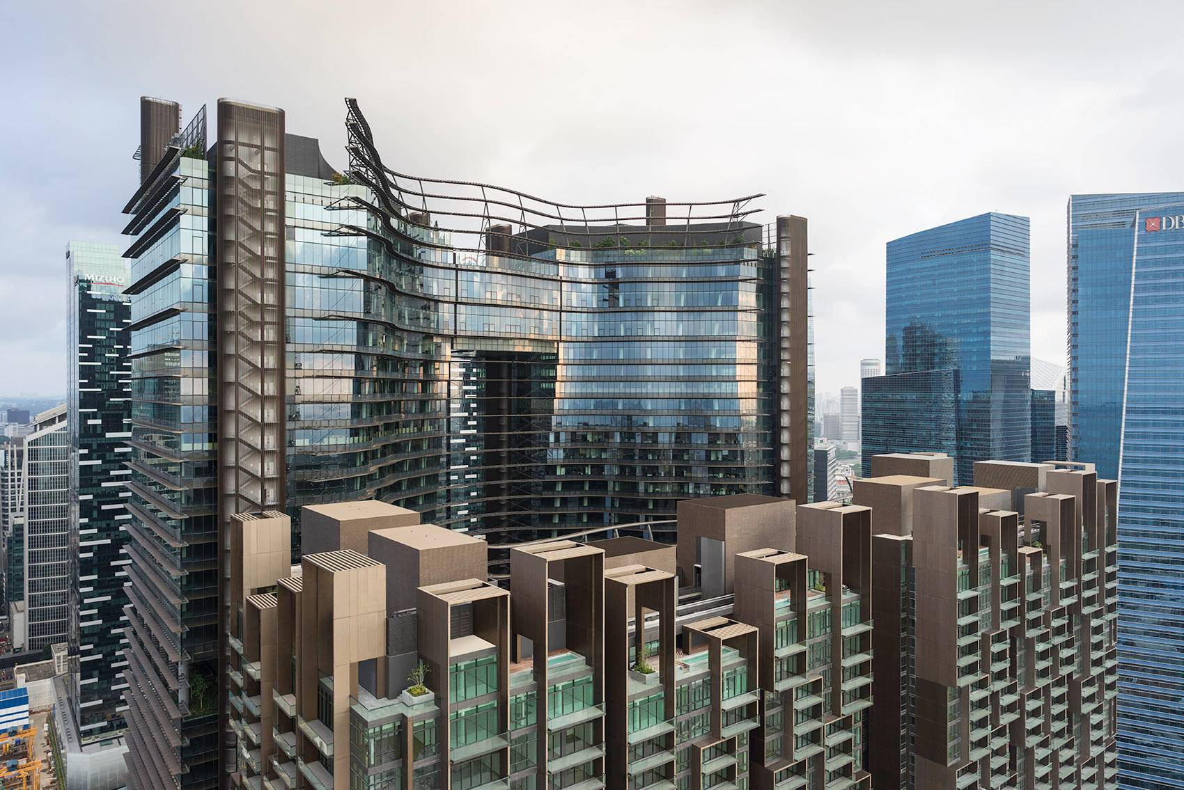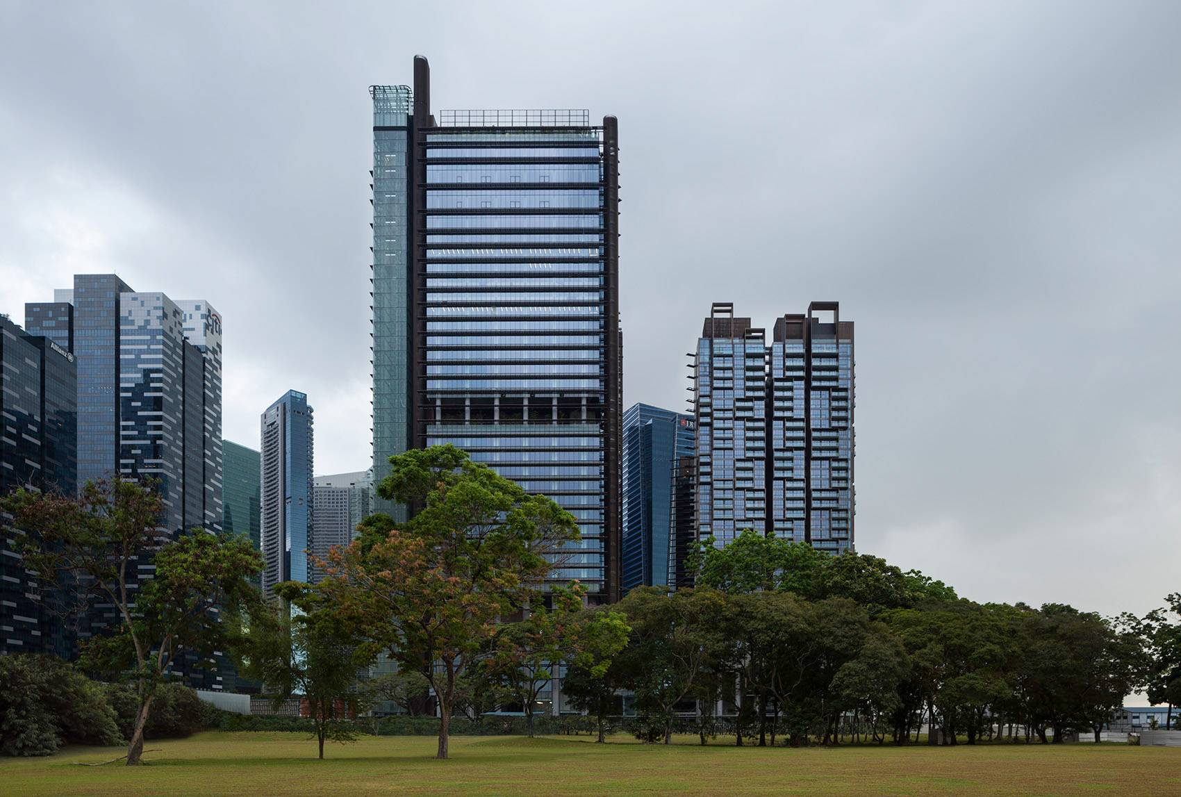 緊湊而高效的布局通過(guò)節(jié)能通風(fēng)系統(tǒng)、高性能的外部遮陽(yáng)設(shè)備以及能夠降低輻射的玻璃窗得到進(jìn)一步完善。大樓與新加坡六條地鐵線中的四條線路直接相連,加上便捷的公交站、自行車(chē)停放設(shè)施和電動(dòng)汽車(chē)充電站,私人交通工具的廢棄排放量被大幅降低。建筑立面和室內(nèi)空間皆選用了平靜而質(zhì)樸的古銅色,帶來(lái)一種和諧舒適的氛圍。