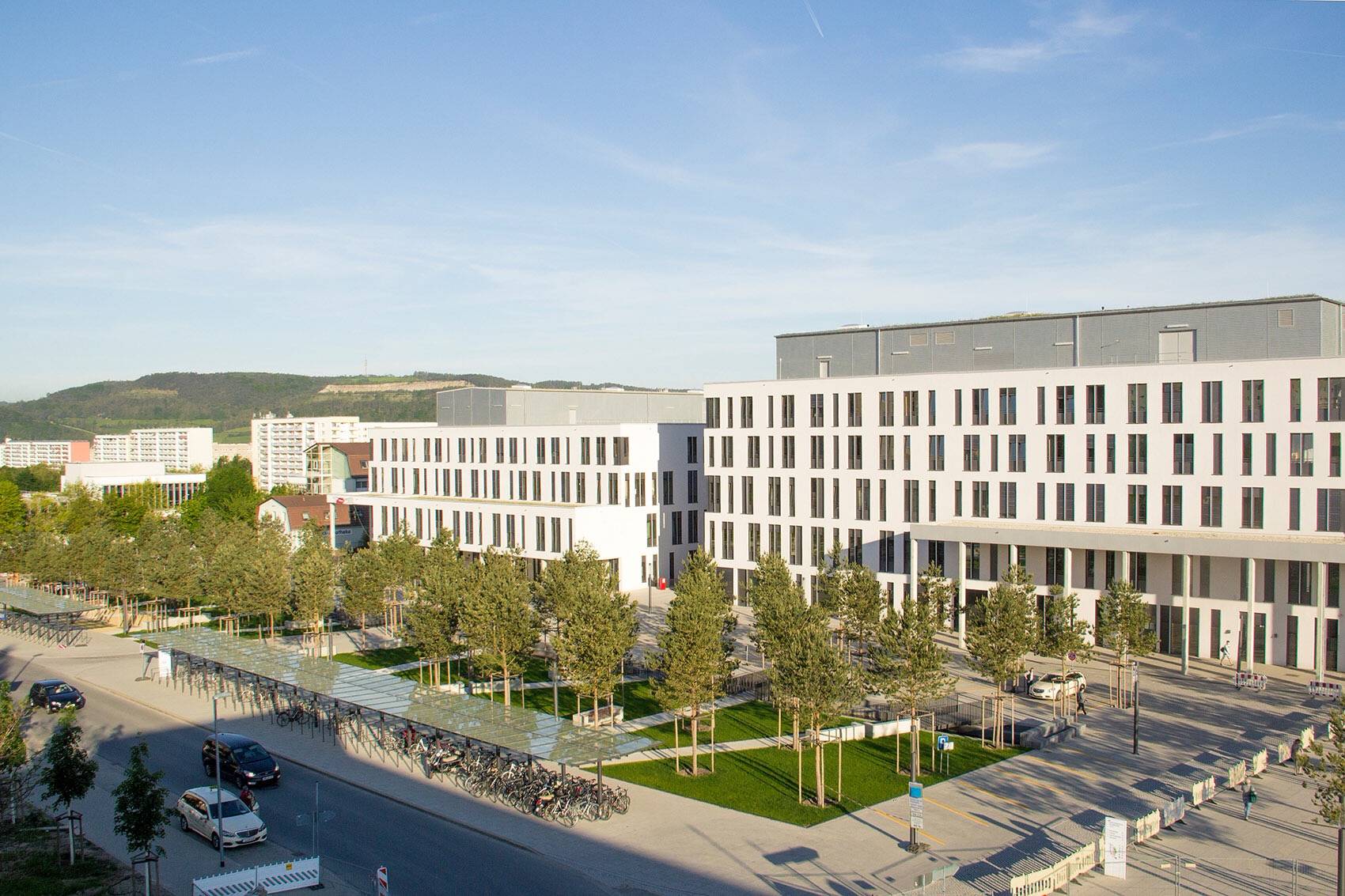 耶拿大學(xué)附屬醫(yī)院新院區(qū)位于耶拿內(nèi)城以南約5公里的東薩爾坡,占地面積約14.8公頃。場地有一個(gè)明顯的西南走向的坡,高差約25米。根據(jù)開放空間規(guī)劃計(jì)劃,設(shè)計(jì)團(tuán)隊(duì)針對場地的自然保護(hù)及交通游線進(jìn)行了設(shè)計(jì)。規(guī)劃滿足德國環(huán)境建設(shè)規(guī)定(GOP、FNP、B-Plan),實(shí)現(xiàn)了場地的可持續(xù)發(fā)展。
