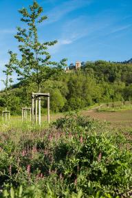 醫(yī)院建筑的擴(kuò)展對自然造成了干預(yù)與破壞,并且坡地和林地在實(shí)施生態(tài)平衡補(bǔ)償中至關(guān)重要。依據(jù)生態(tài)價(jià)值計(jì)算規(guī)則,療養(yǎng)區(qū)恢復(fù)及補(bǔ)種了生態(tài)植被。穿梭其中的無障礙步行道將引導(dǎo)使用者進(jìn)入大自然。