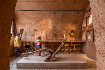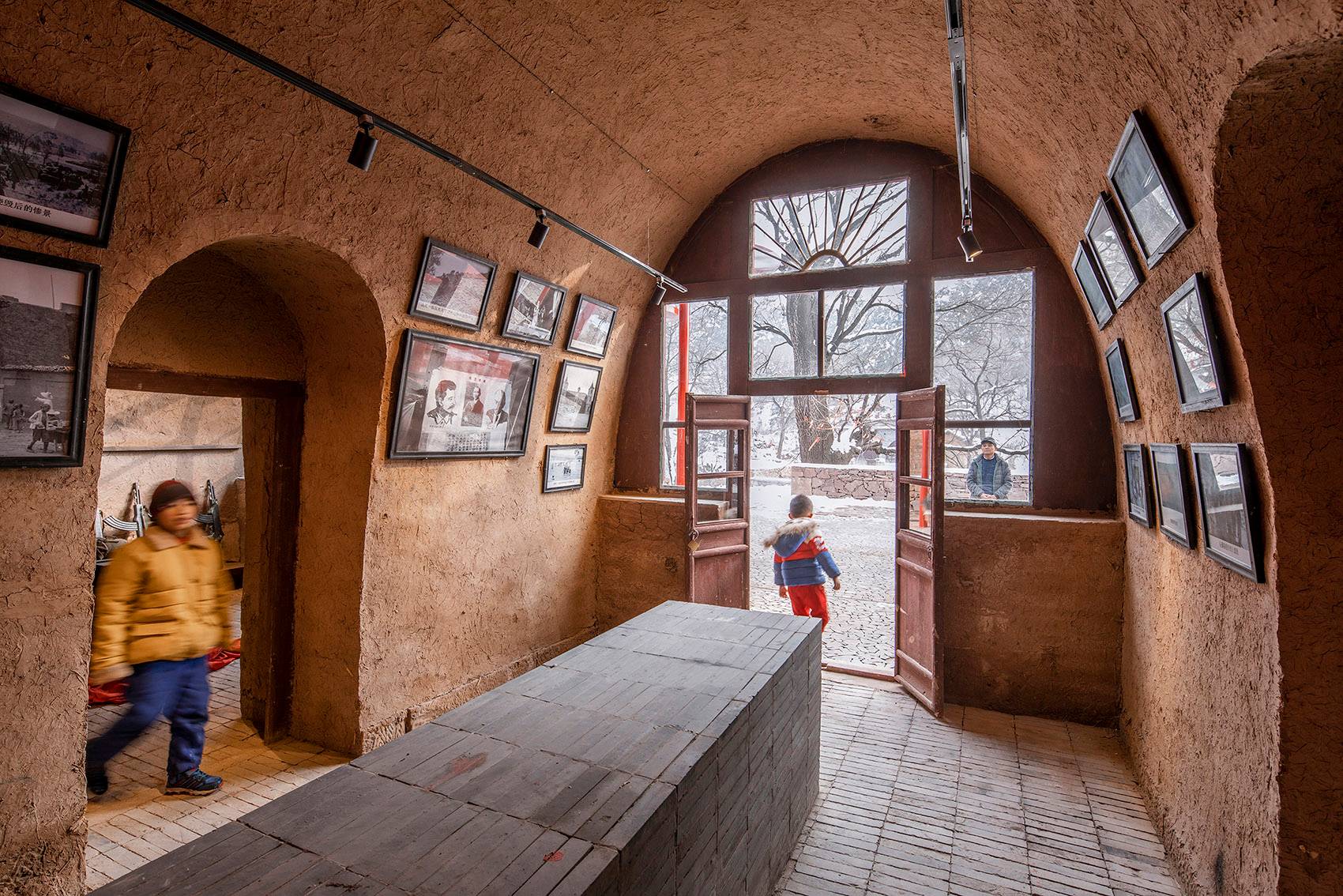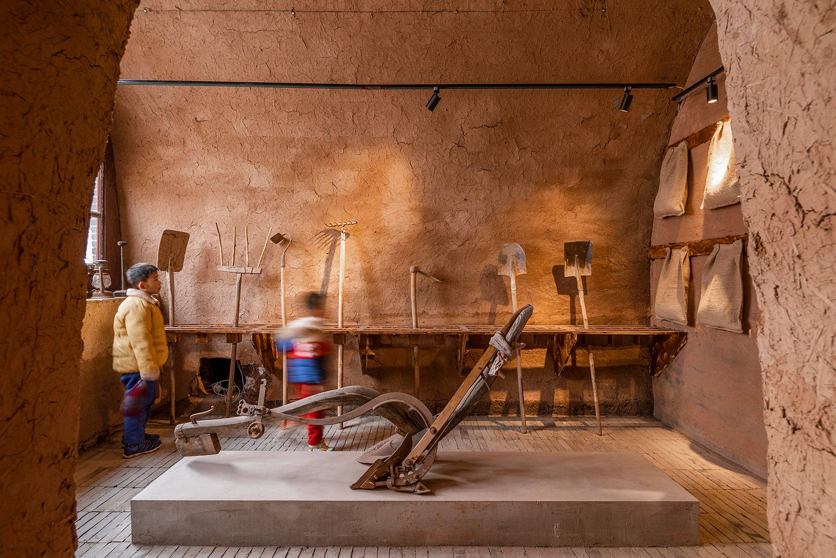 設(shè)計師將新功能設(shè)定為鄉(xiāng)村記憶館和小劇場。老窯洞被整修,外觀保持原貌,室內(nèi)空間被重新布置為小型歷史展廳,用以展示韓洪溝老村的歷史和抗戰(zhàn)時期太岳軍區(qū)的事跡。坍塌的廂房和倒座并沒有被恢復(fù),設(shè)計師并不希望簡單的“修新如舊”,而是希望通過新建筑物的加入,給予場地新的場所精神。