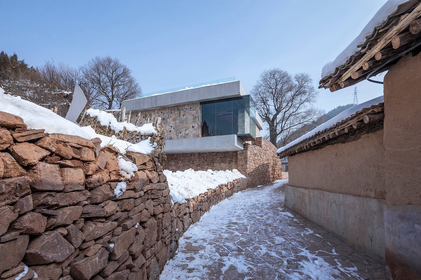 本項目設(shè)計團隊在仔細(xì)閱讀場地文脈context的基礎(chǔ)上,通過加入新的功能,重塑場地的場所精神,使之更符合韓洪溝老村的新產(chǎn)業(yè)訴求,以及新鄉(xiāng)民的審美和精神需要。在設(shè)計手法上,運用當(dāng)代性的建筑和藝術(shù)語言形成新與舊的對話。這種對話并不是對抗性的,也不是混淆時代的信息,而是一種“忘年交”式的共生關(guān)系。