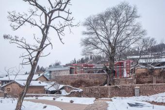 本項目是韓洪溝老村整體復(fù)興計劃一部分,基地是一個三合院,位于韓洪溝老村中部,地勢較高。院落中有一個處空置的三孔窯洞,現(xiàn)狀保持較好,但廂房、倒座、圍墻和院門已經(jīng)坍塌,只剩下基礎(chǔ)的石塊。場地中最為重要的元素是院外的大槐樹。它已經(jīng)有數(shù)百年的樹齡,但仍然枝繁葉茂,如同神靈般守護(hù)著村莊。聽村里老人介紹,大槐樹下一直是村民集會的地方,以前是韓洪溝老村重要的公共空間,也是村莊的精神之地。