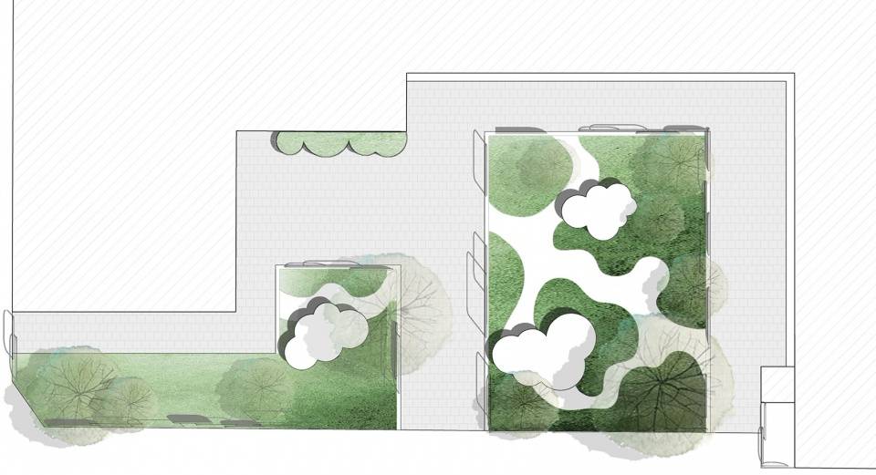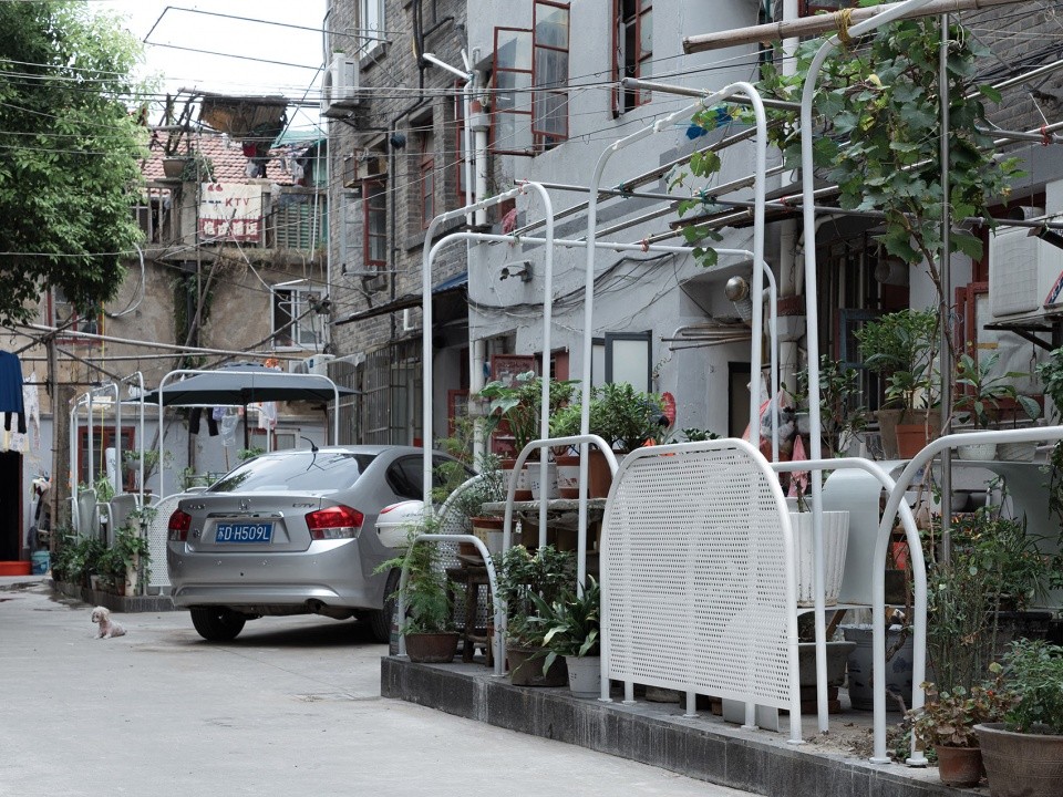 社區(qū)庭院面積380平方,由一個(gè)大的公共綠地和三個(gè)小的私家綠地組成。功能上除了需要通行的道路和庭院的綠植,還需要設(shè)計(jì)規(guī)整居民需要的的晾衣架、圍欄和花架。它屬于一個(gè)歷史街區(qū),是虹口區(qū)長陽路138弄里的一個(gè)被居民樓圍合的微型公共綠地。這個(gè)社區(qū)原是二戰(zhàn)期間上海最大的猶太難民收容所,現(xiàn)在成為舟山居委所屬的自治居民區(qū)。盡管居民很努力地維持著住區(qū)的體面,但100年的社區(qū)畢竟如人老去,一切都顯得有些破敗和凋敝。政府希望通過城市微更新的方式先改造公共空間,這是作為改善民生的第一步,從而提高社區(qū)居民的生活品質(zhì),使老區(qū)煥發(fā)新生。