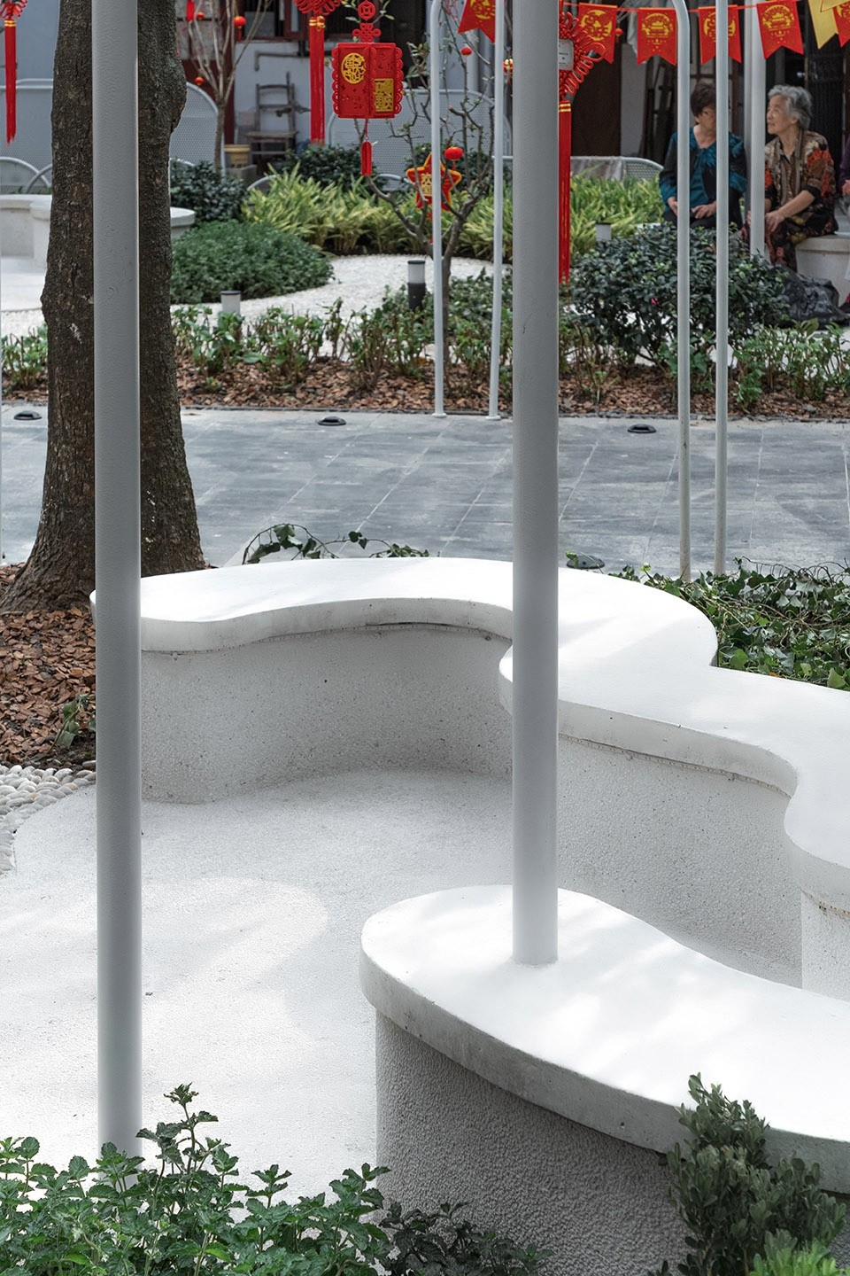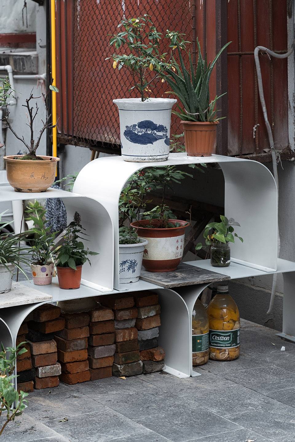事實(shí)證明,符號(hào)可以幫助我們無需多言。施工的過程是枯燥而臟亂的。一開始施工較為順利,居民滿心歡喜的圍觀地下水道的重建,這部分他們理解??墒钱?dāng)重整地基鋪裝石材地面。開始做云亭、晾衣架、圍欄時(shí),整個(gè)形象并沒有完整清晰地表達(dá)出來,他們無法理解在做什么,也不能忍受未完成而看上去的亂。就開始重重阻攔。他們覺得亭子遮擋了自己的窗,覺得晾衣架和圍欄亂七八糟,也有不喜歡植物的居民不容許在自家門前種樹。各種各樣的投訴接踵而來,項(xiàng)目建筑師被圍著罵,施工隊(duì)舉步維艱。而后街道、居委、居民、設(shè)計(jì)方和施工隊(duì)經(jīng)過多次協(xié)商、耐心調(diào)整,既平衡各方需求,又要達(dá)到設(shè)計(jì)效果。取得居民的諒解得以繼續(xù)施工。可是等云院完整地出現(xiàn)在居民面前。居民輕而易舉通過符號(hào)創(chuàng)造的真實(shí)夢境,直白地閱讀出庭院的故事和象征意義