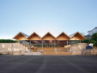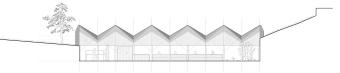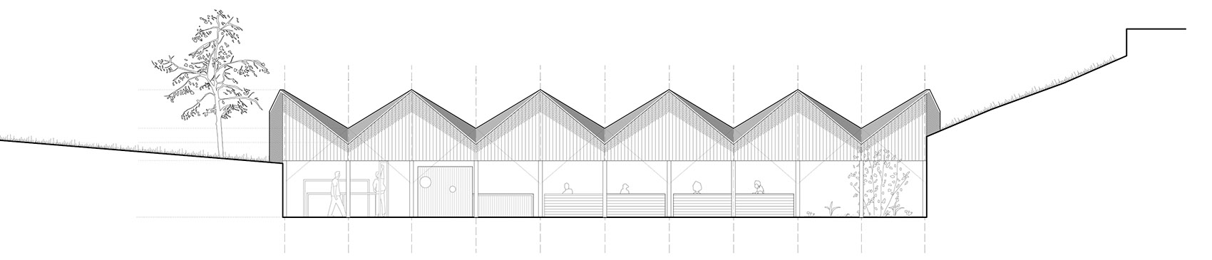 ▼折線形的屋頂和當(dāng)?shù)貍鹘y(tǒng)的建筑風(fēng)格相呼應(yīng)