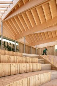 新的休閑空間根據(jù)功能分成不同區(qū)域,分別擁有不同的空間特征,為原本的聽眾席增加新的可能,各種各樣的活動都可以找到適合自己的場所。上部空間功能主要為健康和運(yùn)動,設(shè)置了面向老年人的健身房。露臺的改造包含雙重功能:一方面設(shè)計師提升了環(huán)境的舒適度,為嬰兒提供休息空間;另一方面則設(shè)置了公共座椅用來欣賞可能的演出。