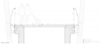 溪流中的蘆葦和水草、以及隨風(fēng)搖曳的植物都為本天橋的設(shè)計(jì)提供了靈感:采用垂直元素。兩列傾斜向上的細(xì)柱限定出橋梁的走勢(shì),其中每根細(xì)柱的傾斜角度和高度都各不相同。天橋的欄桿扶手由雙層表皮形成:外層是帶有河床植被圖案紋理的金屬錫穿孔板;內(nèi)層則是由垂直元件制成的扶手。當(dāng)夜間的燈光緩緩亮起的時(shí)候,這兩個(gè)表皮能夠在橋梁上營(yíng)造出一種如霧般的朦朧效果,給人一種置身于蘆葦叢中的錯(cuò)覺。