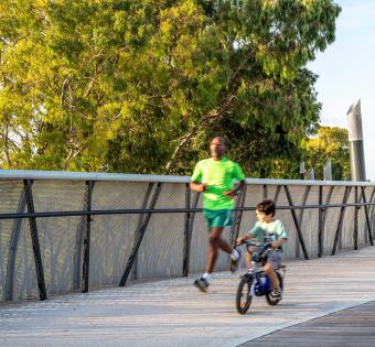 ▲天橋外觀,專為步行人士和騎自行車的人服務(wù)