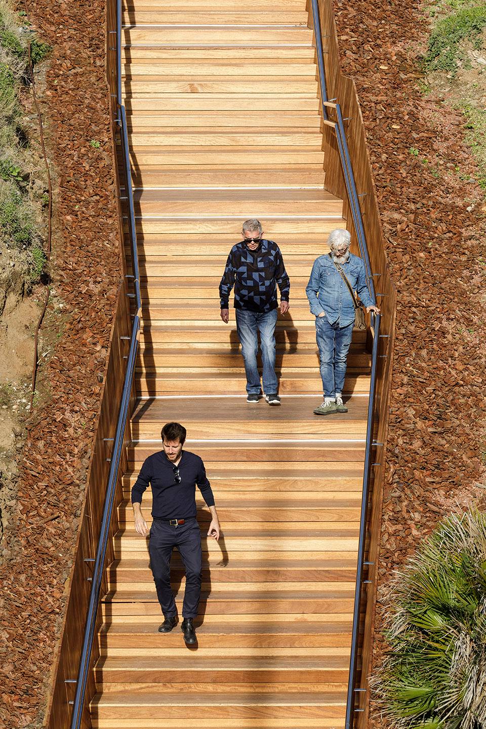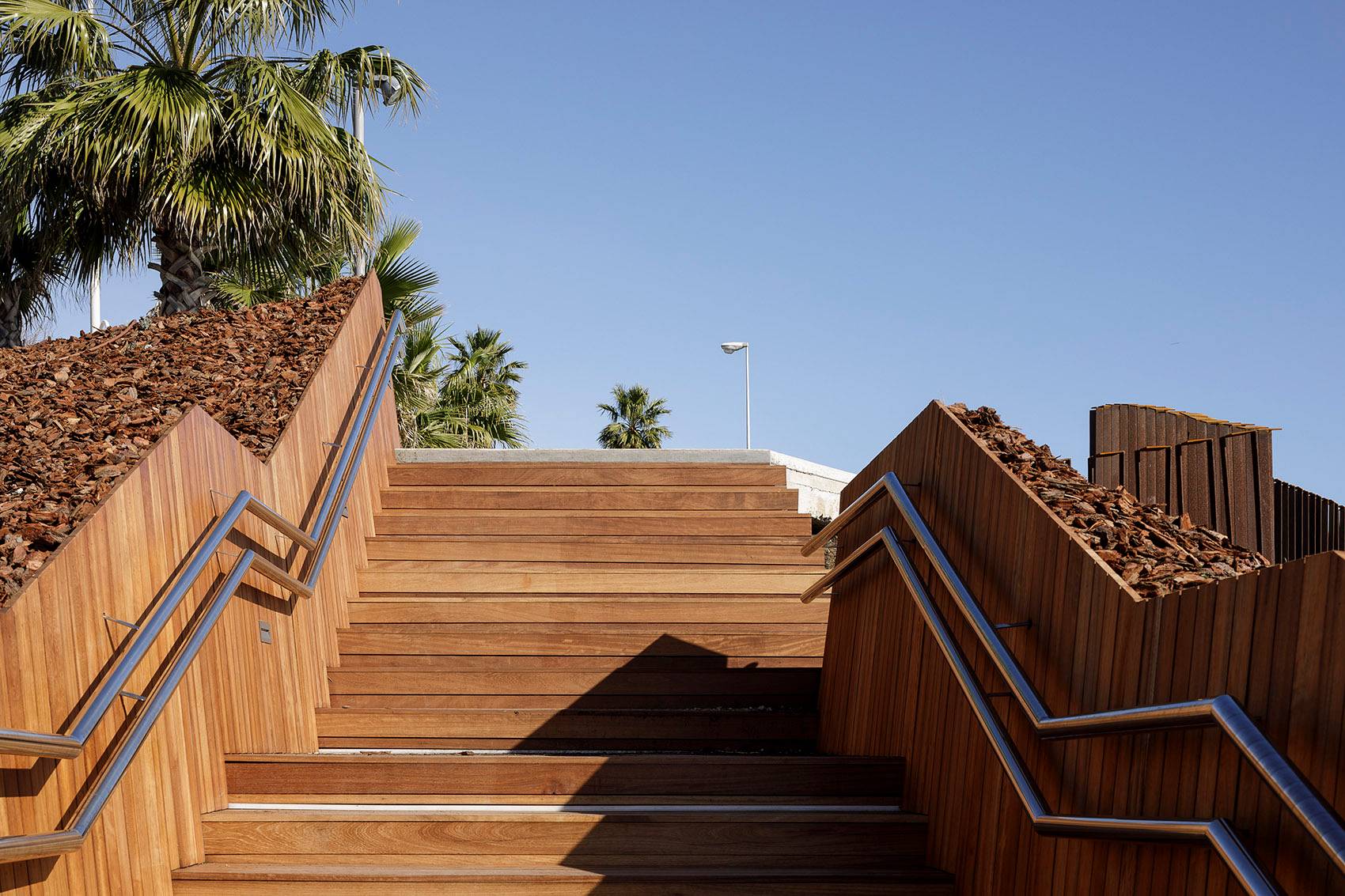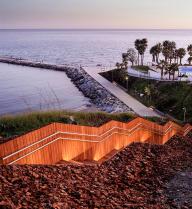 ▲臺階連接起城市街道與濱海步道