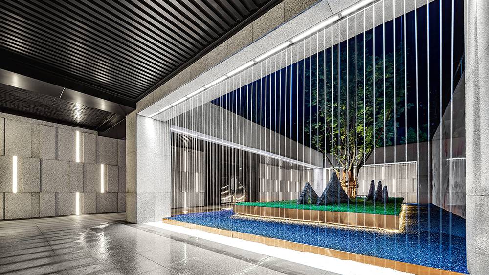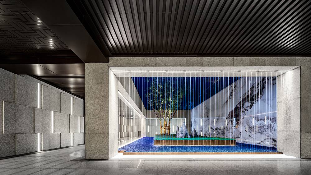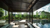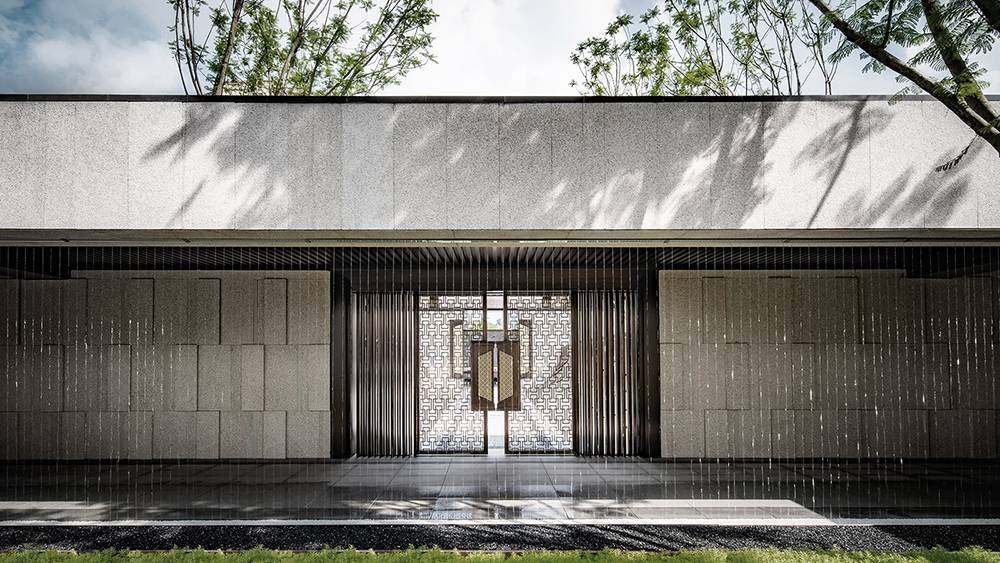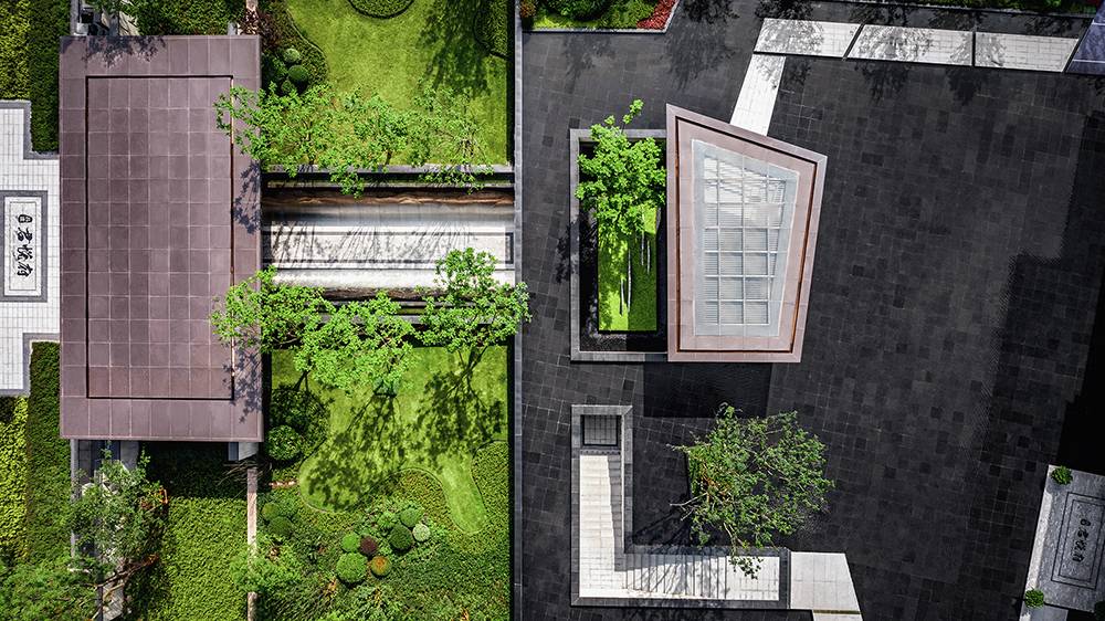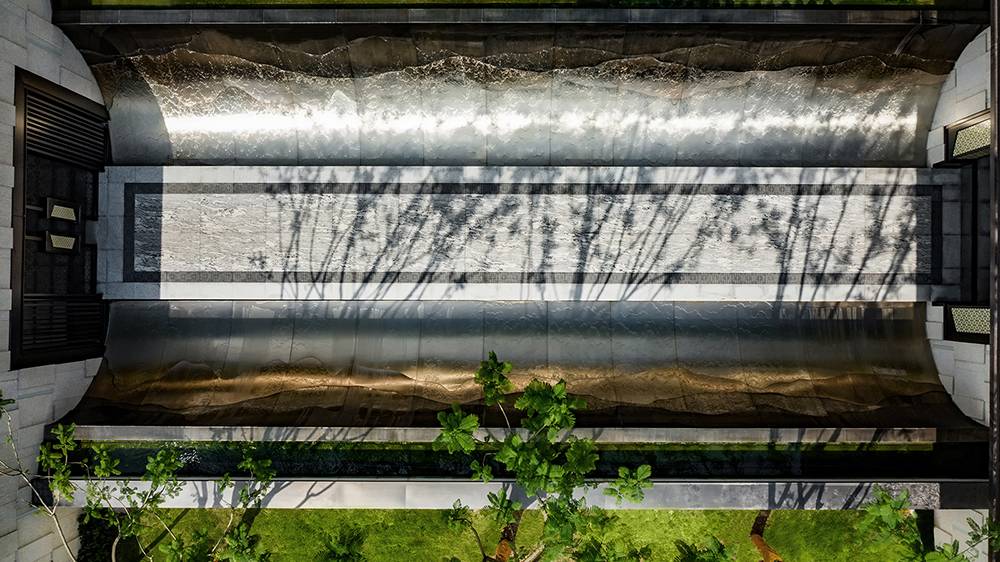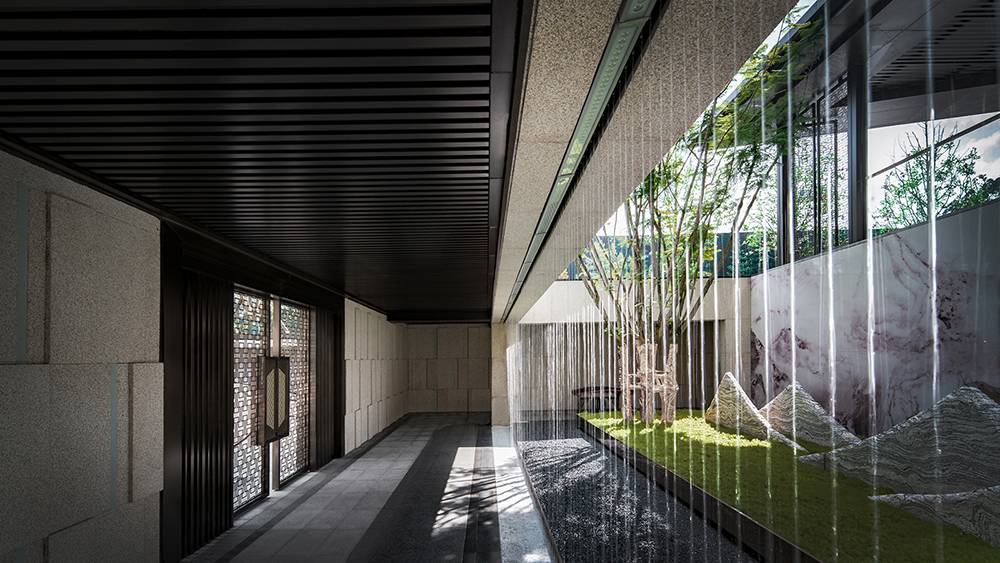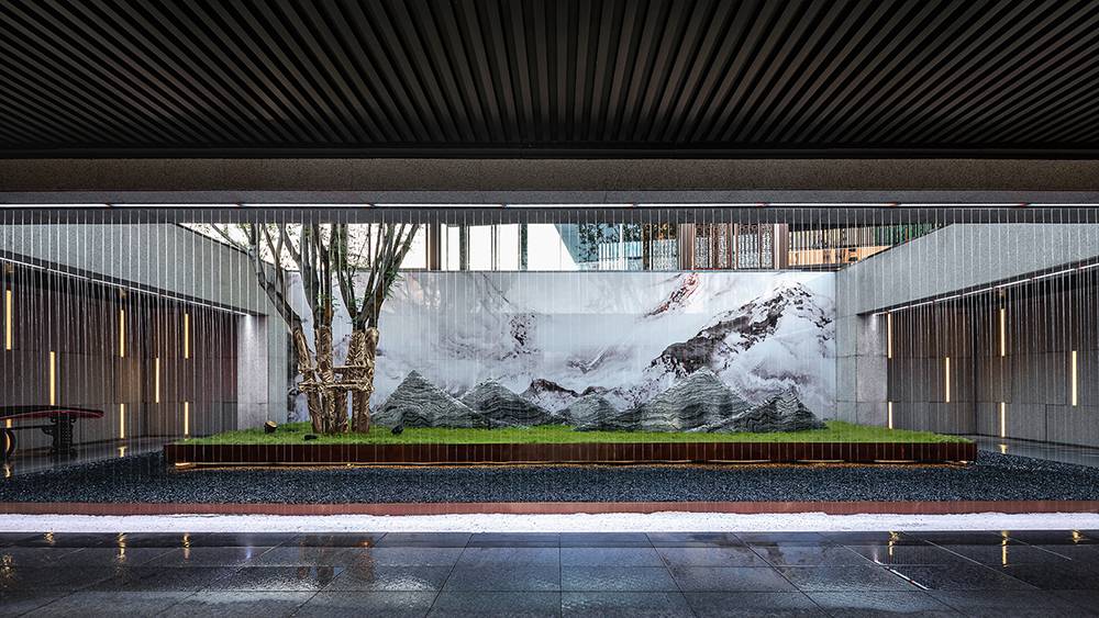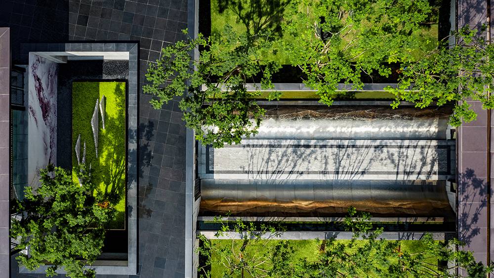 設(shè)計中,更是取有形的建筑景觀之美,營造無形情境的生活之美。引用自然山水元素,利用建筑結(jié)構(gòu)及草木植株的光影對空,將東方美學(xué)帶到現(xiàn)代理性當(dāng)中,勾畫精美、雅奢、禪意的東方畫境,仿佛人在畫中游。