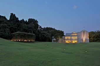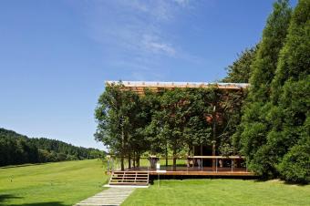 前澤花園住宅(Maezawa Garden House)位于日本的黑部市,面朝日本海,擁有一個廣闊的天然花園?;▓@中草地起伏,樹木蔥郁,角落處設有一個早已融入自然景觀的圓形露天劇場。這個劇場由一片原有的緩坡草坪、一個圓形平臺和一個半圓形的木制階梯構成。帶有坡度的草坪和階梯面對面地分布在圓臺的兩側。