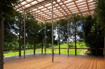 另外,考慮到觀眾也需要一個休息空間,建筑師們便設計了一個花園涼亭。這個涼亭的屋頂由17棵大樹(橡樹和雪松)以及鋼柱支撐。設計團隊將其命名為“白花涼亭”,作為人們在花園周圍漫步時的休息場所。