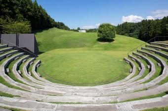 ▲露天劇場,由一片緩坡草坪、一個圓形平臺和一個半圓形的木制階梯構成