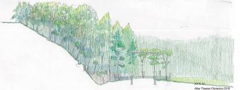 注:確切來講,就結構工程而言,該涼亭屋頂?shù)呢Q向荷載共由26根柱子支撐,其中17根“柱子”是活樹,9根柱子是鋼管;其橫向的地震荷載則僅有鋼柱支撐?;顦錁涓傻闹睆綖?厘米,并不足以滿足該地區(qū)最大降雪深度(1500厘米)時的荷載支撐標準。本項目原只用于國際戲劇節(jié)活動,但在人們的強烈要求下,今后它將繼續(xù)為人們提供服務性空間。