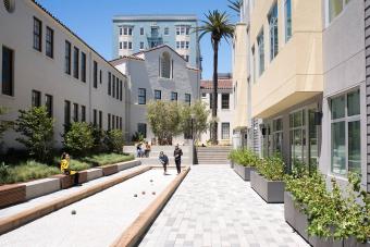 Alta Laguna是一座占地六英畝的綜合體,位于舊金山的中心,距離繁華的市場大街僅有幾步之遙。區(qū)域規(guī)劃結(jié)合了一系列宏大的項目,包括330個市價公寓單元,110個對LGBT群體友好的高級公寓單元、各類公共空間、一個社區(qū)花園以及一系列居民專用的私人庭院。