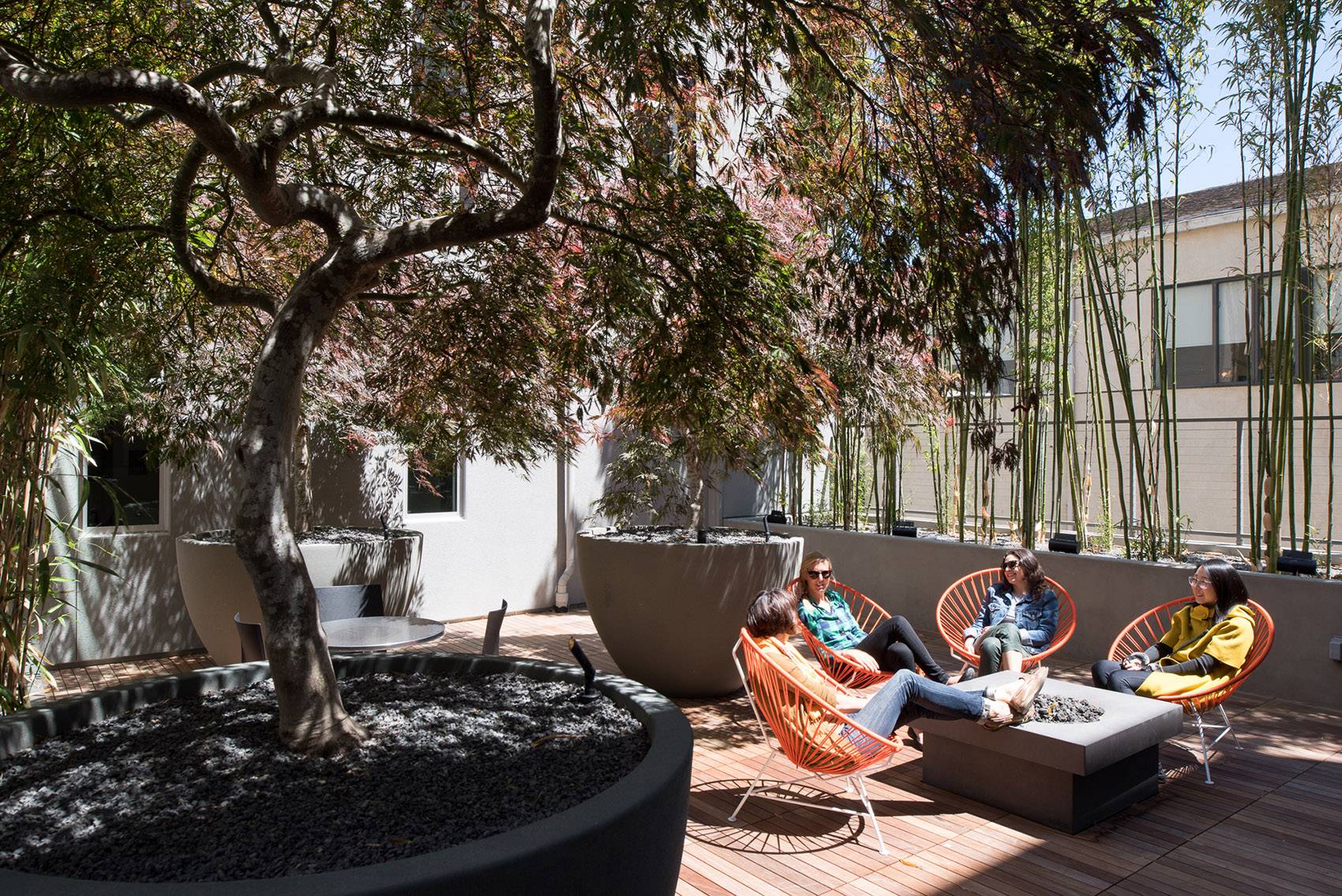 Waller公園作為該區(qū)域的公共動脈,以城市步行長廊的形式貫穿了綜合體所在的地塊。公園享有壯觀的景色,其地勢向下傾斜50英尺(15.24米),設(shè)有一座大樓梯。銀杏樹優(yōu)雅地排布在公園的各個層次,與美觀的樹籬、水道、鋪路材料和戶外家具共同構(gòu)成了公園的軸心。