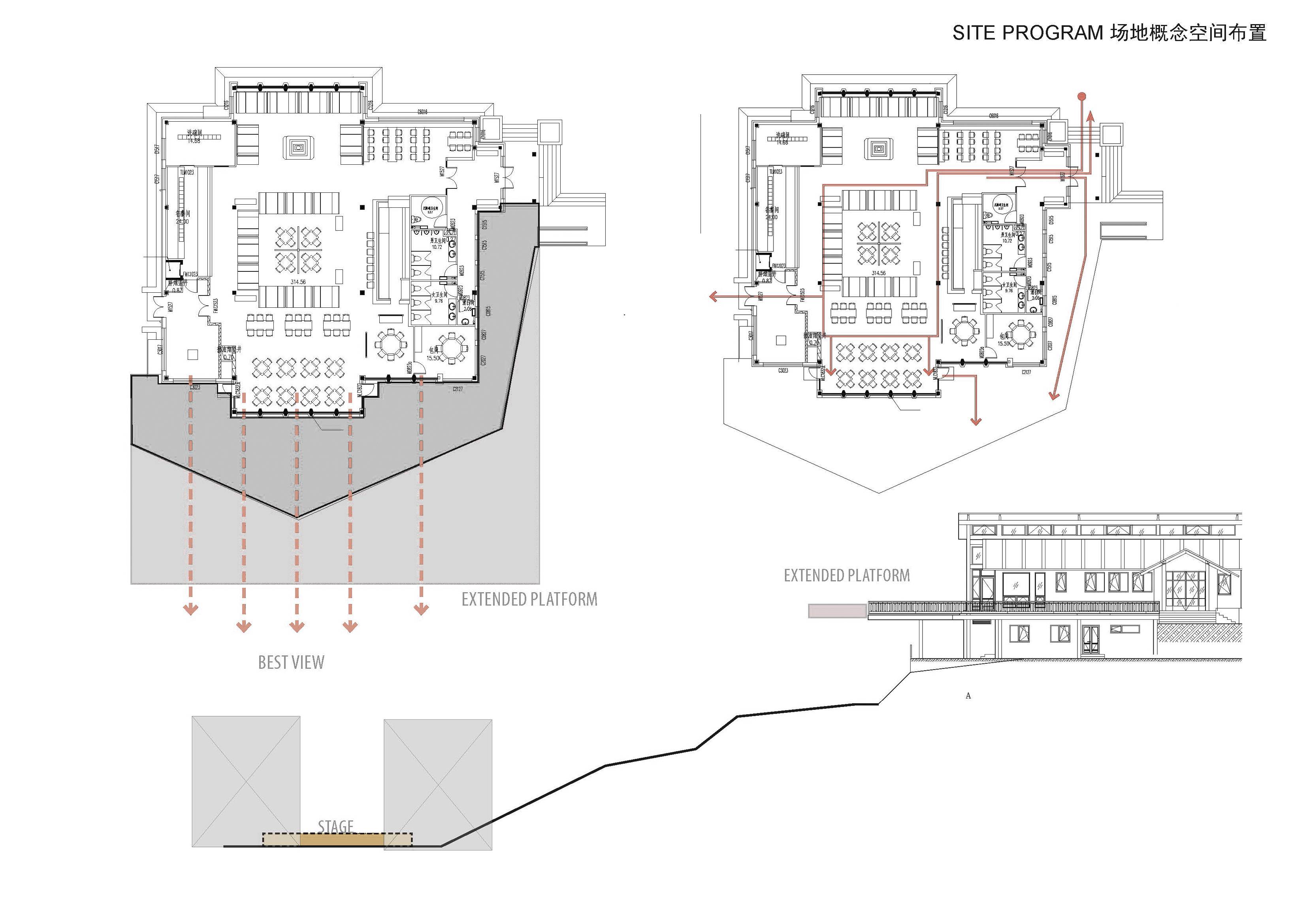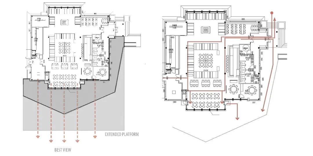 視線(xiàn)分析幫助我們確定劇場(chǎng)的朝向和舞臺(tái)具體的位置,無(wú)論從建筑平臺(tái),周邊道路,纜車(chē)還是劇場(chǎng)內(nèi)部,各個(gè)方向都能獲得最佳視野,增加訪客在空間停留的時(shí)間,增加場(chǎng)所的經(jīng)濟(jì)效應(yīng)。