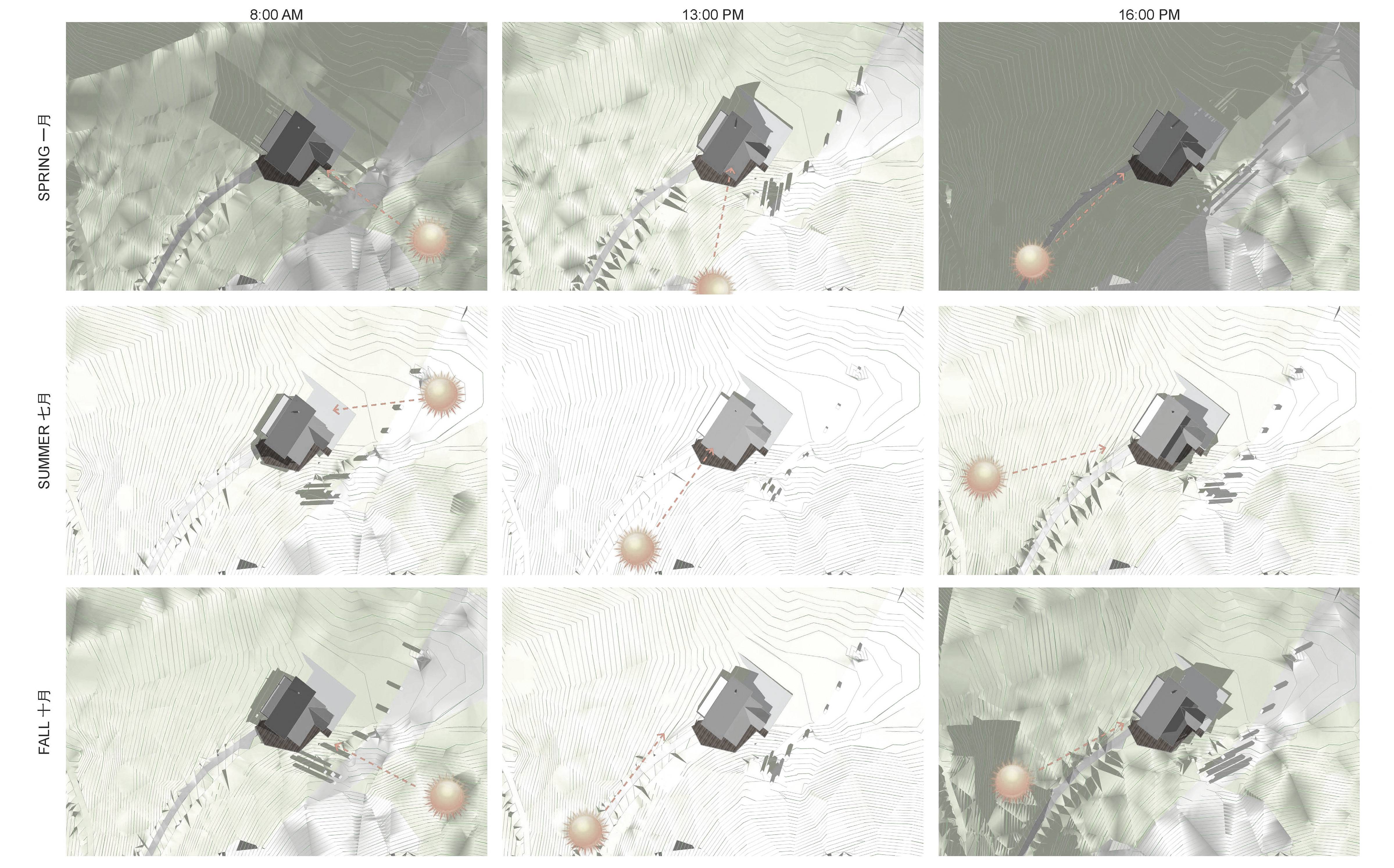 但場(chǎng)地高差大,緊挨雪道,且周邊原生的環(huán)境讓我們不忍心橫刀闊斧地打破自然的寧?kù)o。那怎么在這里設(shè)計(jì)一個(gè)公共空間,滿(mǎn)足夏季冬季的活動(dòng)需求,增加場(chǎng)所的經(jīng)濟(jì)效應(yīng),還能保持一定的生態(tài)平衡呢?
