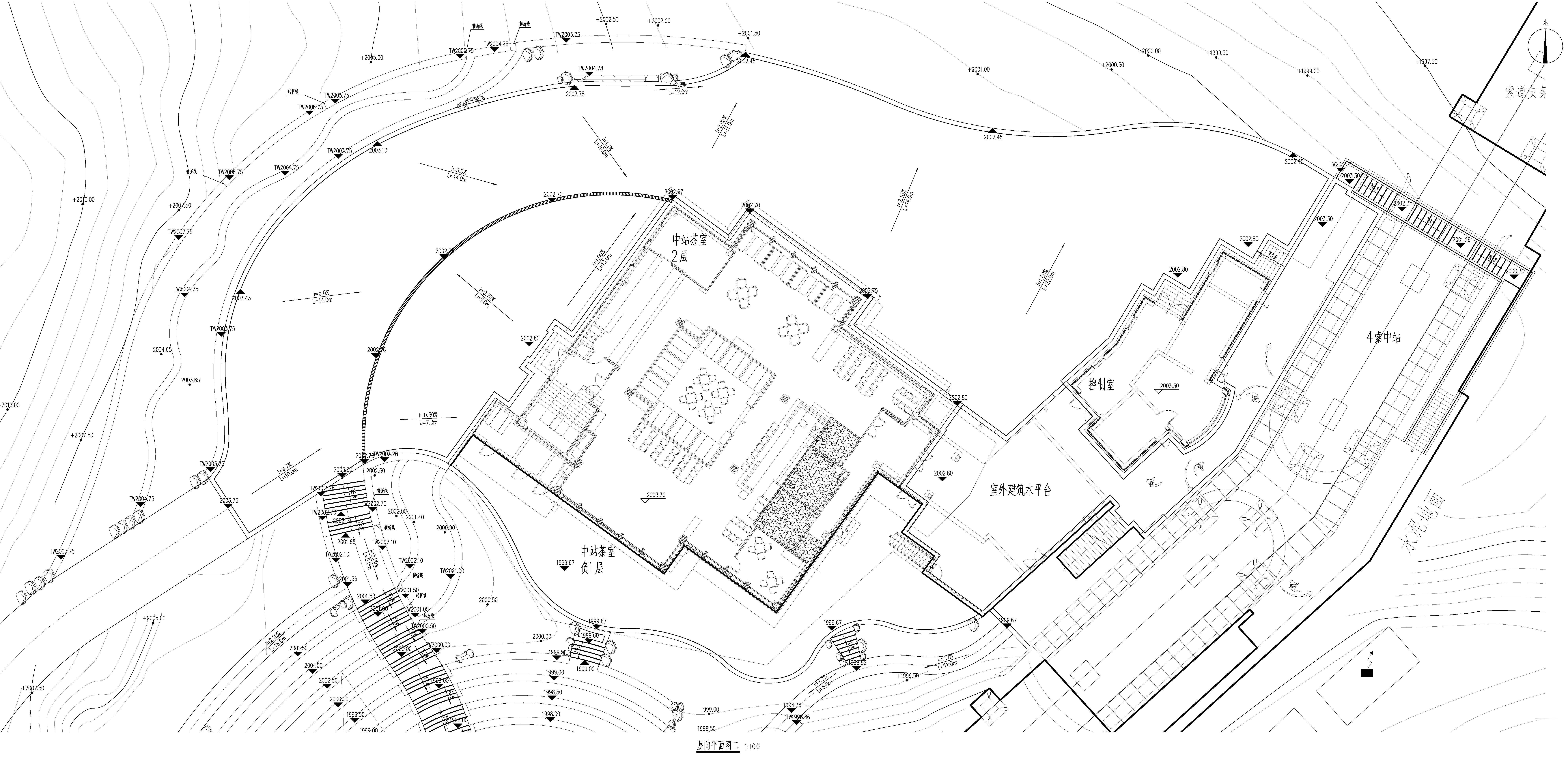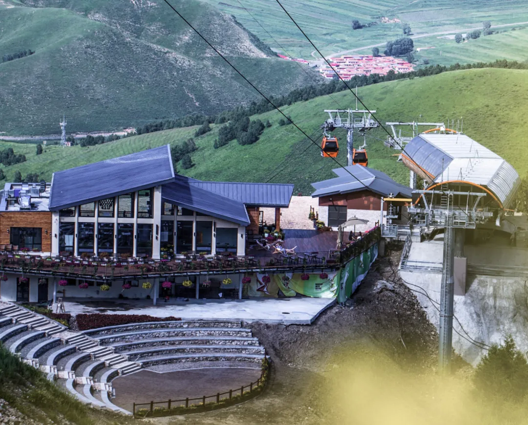 索道中站位于海拔2003米的玉石梁山腰部,坐擁主峰壯美的山景。場(chǎng)地中規(guī)劃了索道中間站臺(tái)和奧地利風(fēng)格休息室,對(duì)于這個(gè)場(chǎng)所的公共空間,業(yè)主的要求很明確: