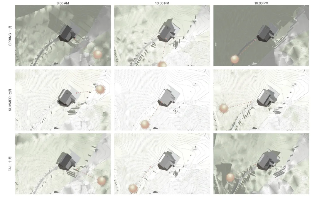 室內(nèi)舞臺(tái)設(shè)計(jì)尚且要考慮燈光與舞臺(tái)的關(guān)系,那么戶(hù)外舞臺(tái)則更需要注意陽(yáng)光帶來(lái)的影響,不能刺眼。我們分析不同季節(jié)不同時(shí)間的日照角度,為室外活動(dòng)的運(yùn)營(yíng)日程和時(shí)間提供依據(jù)。