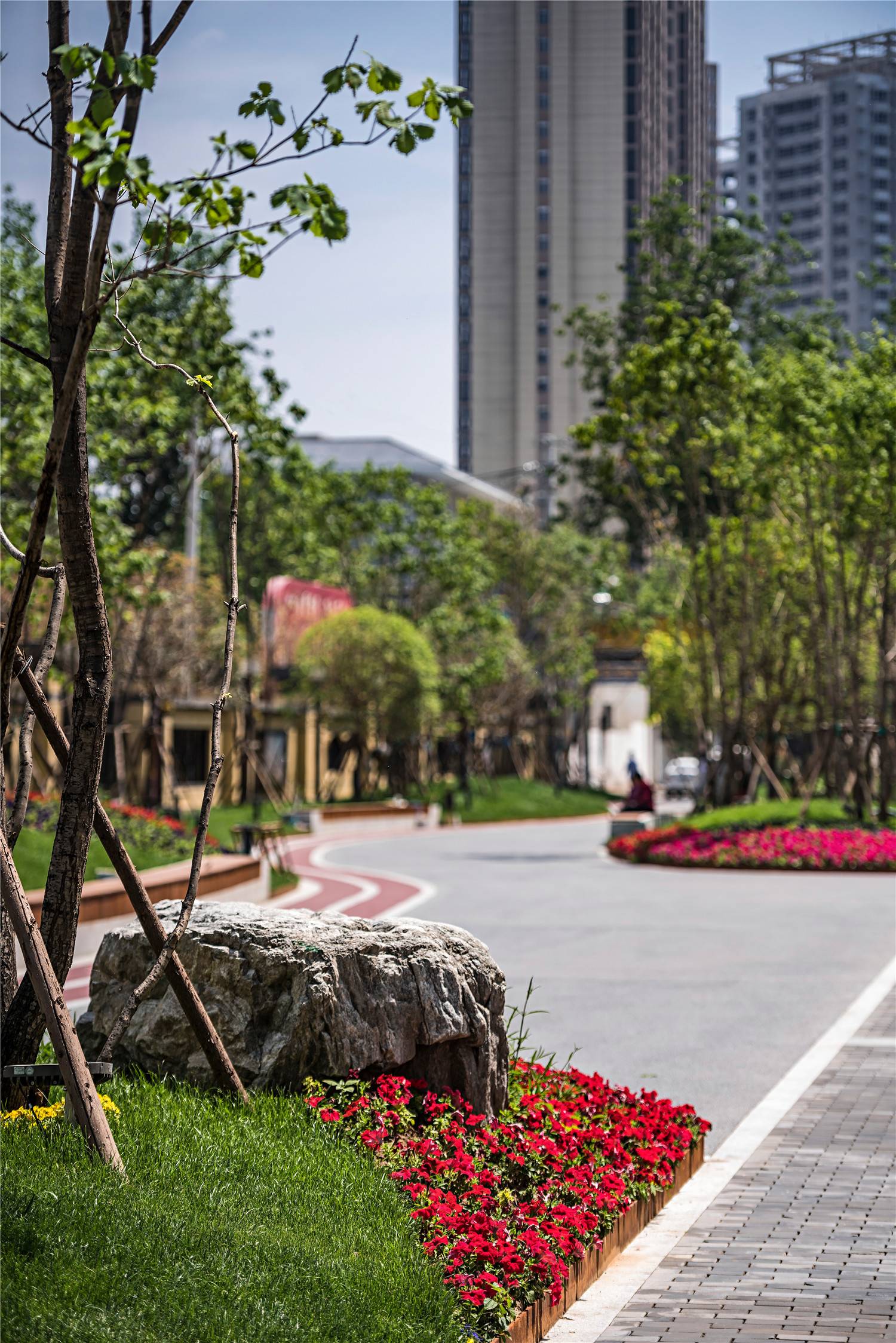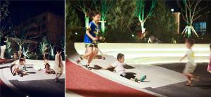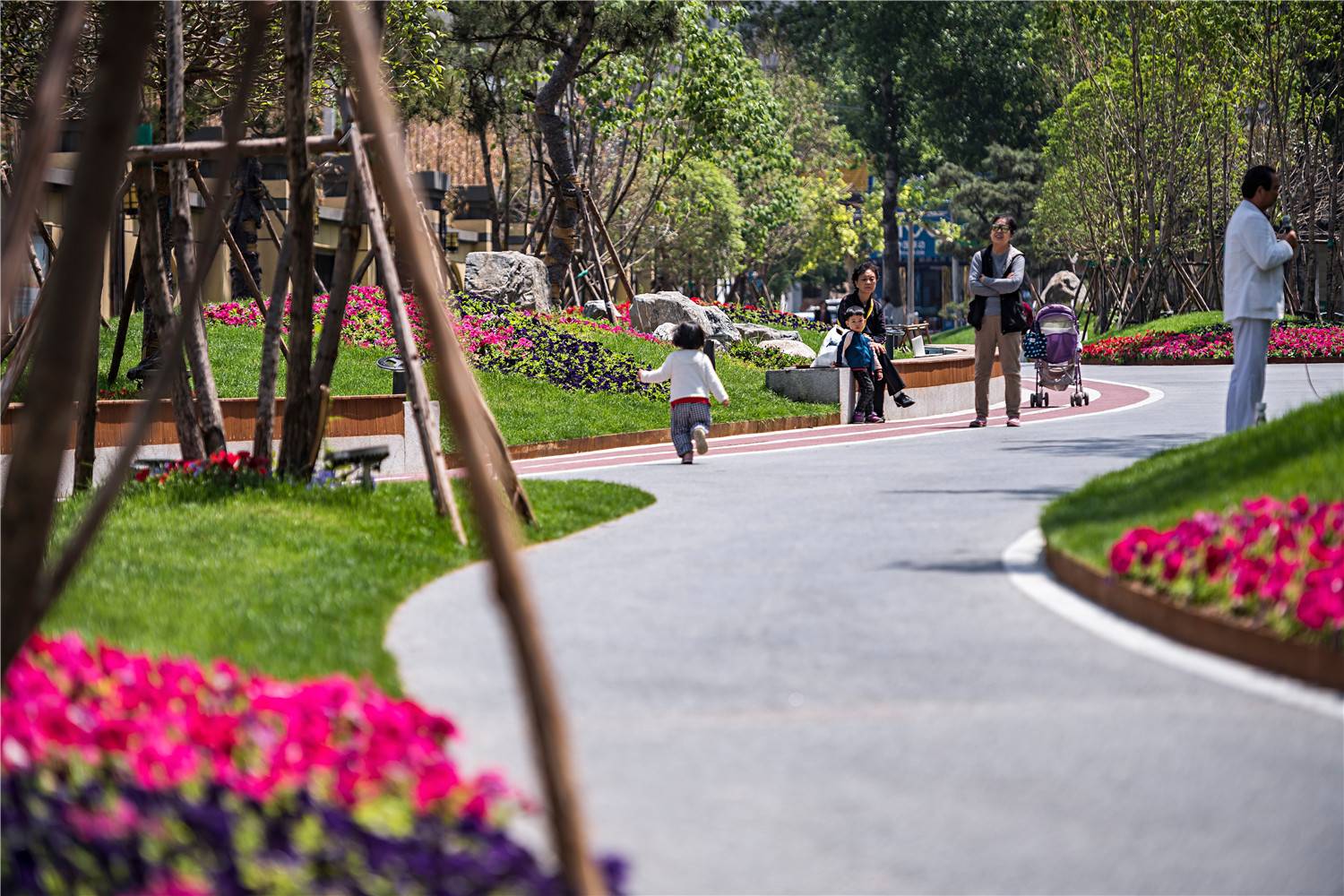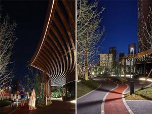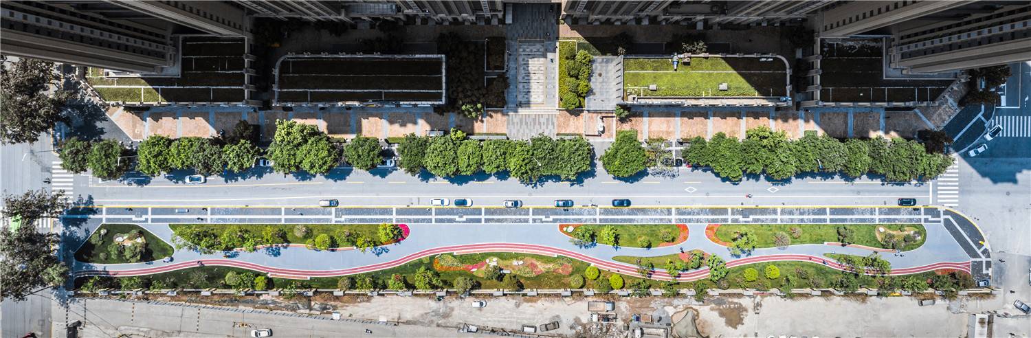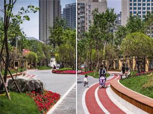 In regard of this, we studied the area’s service functions and dynamic route of surrounding users, re-organized the site to explore plasticity of urban texture, and broke up traditional single and linear layout. We reshaped the belt area’s boundary via curves and motivated the site using colorful jogging lanes.