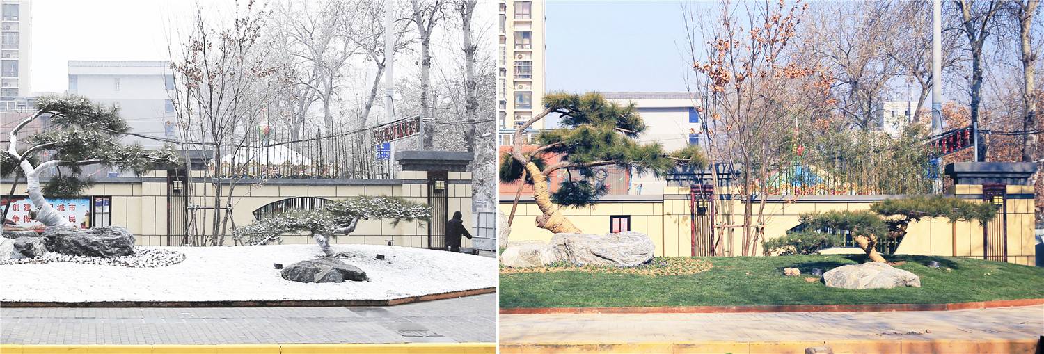 而對(duì)于緊隨其后開(kāi)工建設(shè)的廟張姚社區(qū)口袋公園,我們稱之為口袋公園2.0,這一次,在分析太陽(yáng)固定運(yùn)動(dòng)軌跡、年主導(dǎo)風(fēng)的風(fēng)場(chǎng)特征的基礎(chǔ)上,通過(guò)疊加冬夏日照充足和陰暗的區(qū)域,明確適合冬夏活動(dòng)的場(chǎng)地,打造夏天可避蔭,冬天可活動(dòng)的口袋公園,切實(shí)提升人們居住與活動(dòng)環(huán)境的舒適性、市容的美觀性。這一技術(shù)之前更多的被運(yùn)用于居住區(qū)活動(dòng)場(chǎng)地的設(shè)計(jì)之中,而市政項(xiàng)目涉獵甚少。但對(duì)于面域狹窄,四周緊鄰高層建筑的口袋公園來(lái)說(shuō),確有其優(yōu)勢(shì)所在。