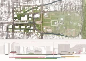 The current situation is that the use of original axis space of the Gwanghwamun Square has been replaced as the city traffic function and the space has been separated by the surrounding high-rise buildings and traffic network at the same time, its historical values and solemn atmosphere cannot be highlighted.