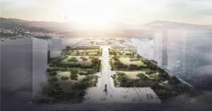 ▲置入山脈地形,打造百年后的城市森林,重塑純粹的人行空間與儀式性場景。