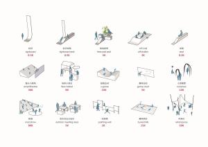 1K≈10 square meters.Taking K as a unit, various activities are assigned to the site and the activity forms of public space are sorted out, that is to say, convert the floor areas of different functional spaces according to the basic unit K value, forming a diverse and rich city square by reasonable layout and embedding.