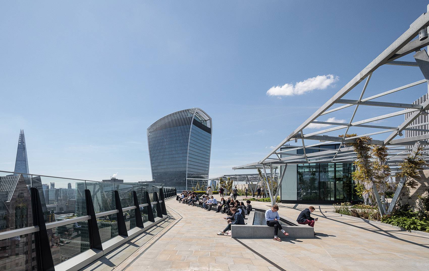 本項目是倫敦市內最大的公共屋頂花園空間。它位于芬徹奇街120號,是辦公樓屋頂空間的重要組成部分。該花園對所有人免費開放,且無需預約??梢哉f,它為辦公樓中的工作人員、倫敦的市民乃至游客們提供了一個獨特的休息場所和一個優(yōu)越的開放空間。