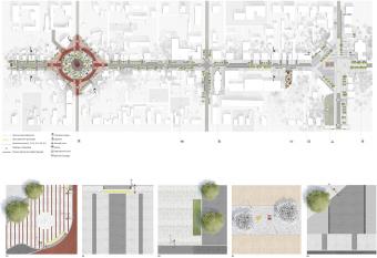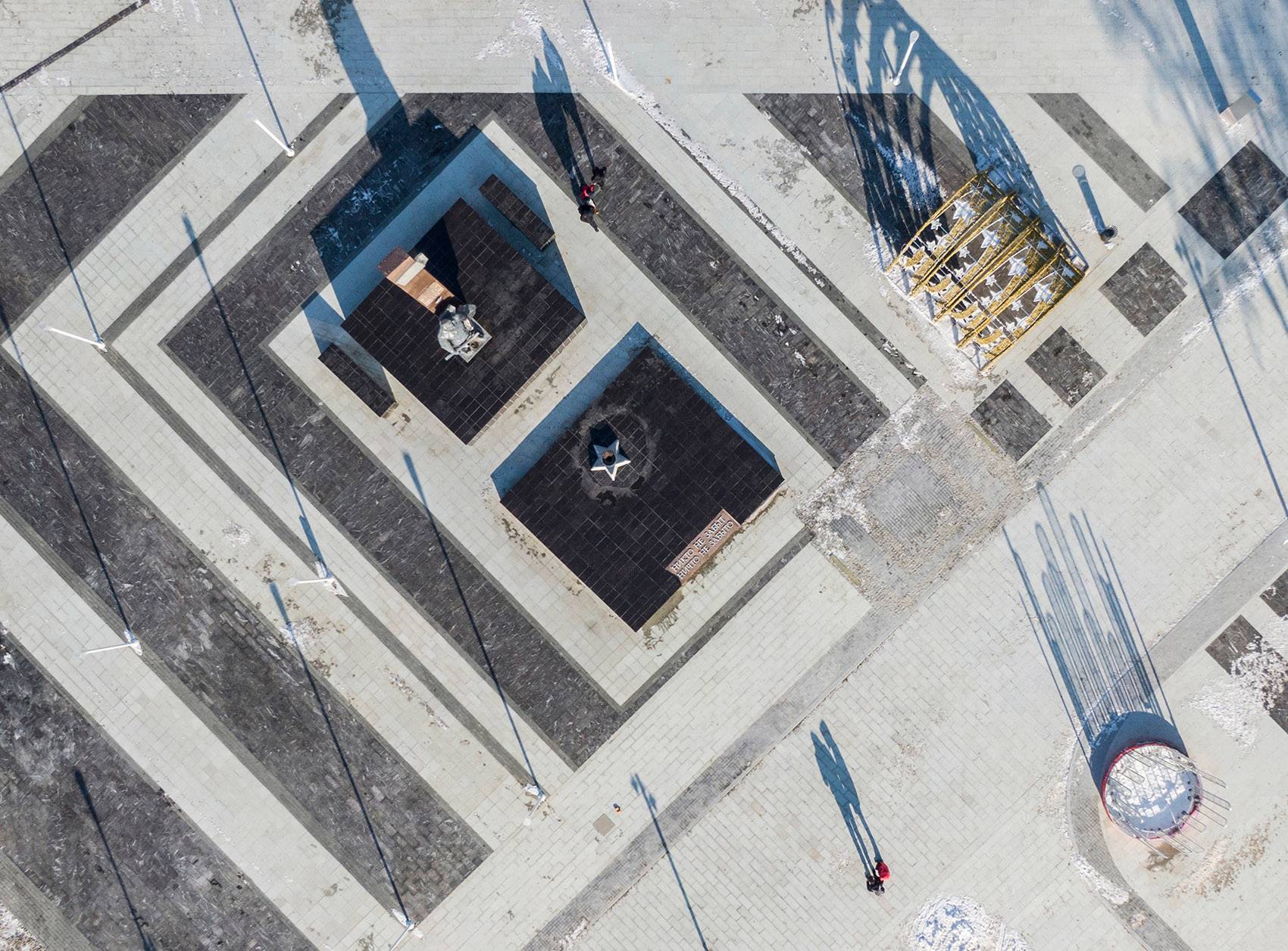 另一個特色區(qū)域是位于18世紀拱廊街和三一教堂附近的廣場,它與馬路處于同一平面,并以花崗巖鑲邊,可以作為大型活動場地使用。修復后的二戰(zhàn)英雄和永恒火焰紀念雕塑同樣以變化的鋪路材料得以突顯出來。