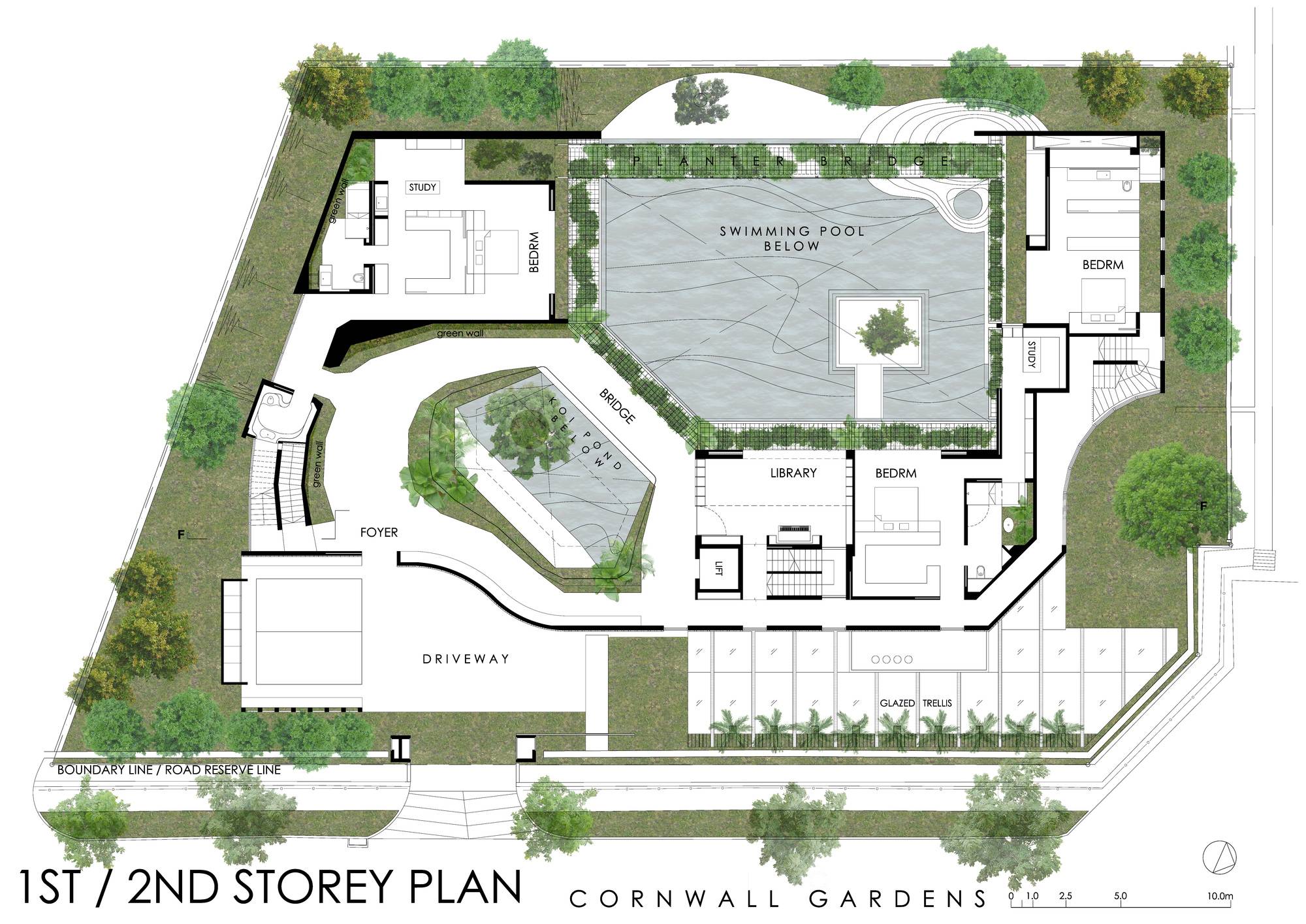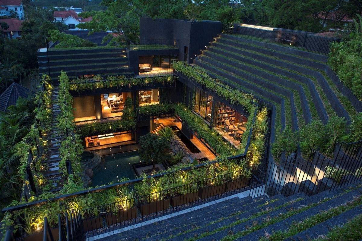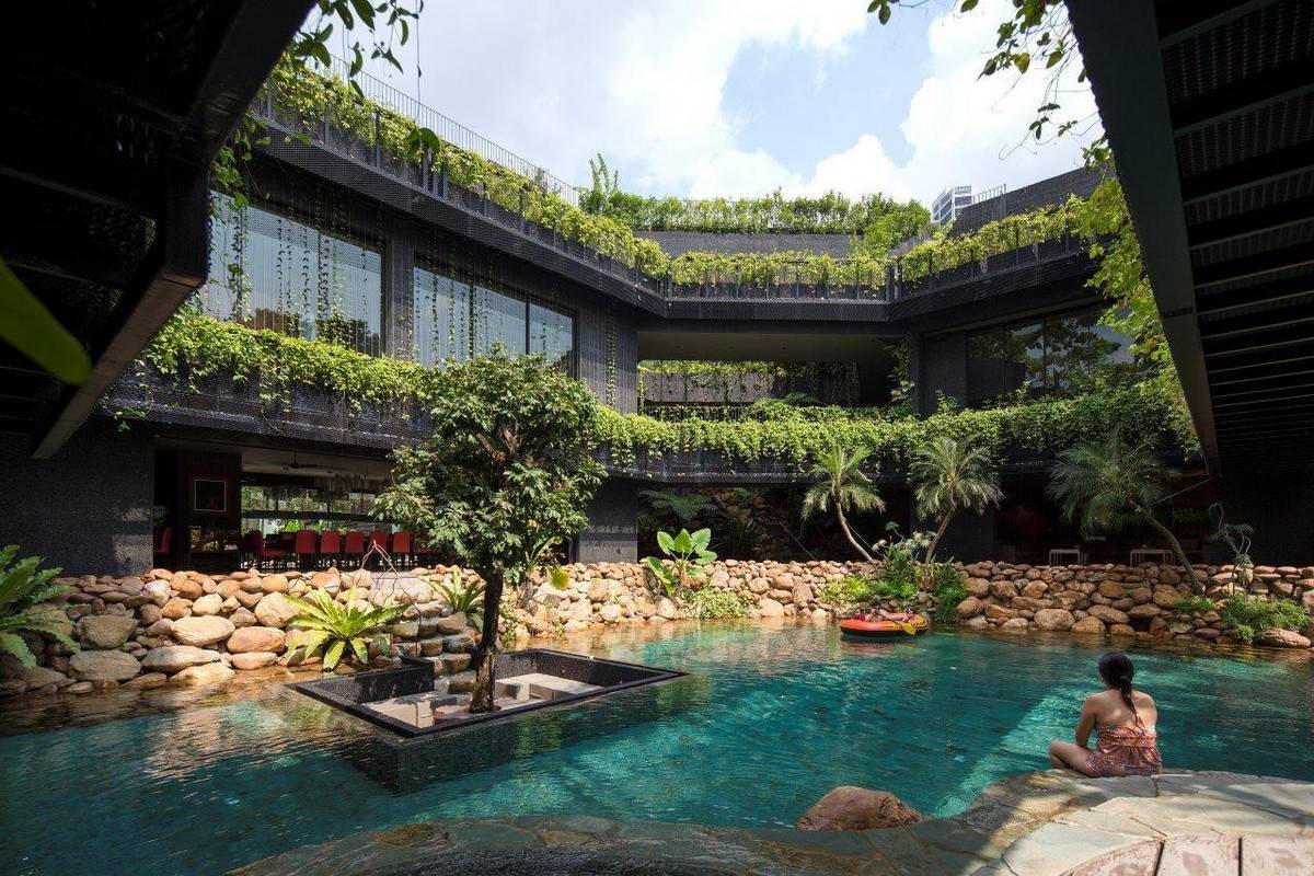 這座房子是供幾代人居住的??蛻粝胍粋€(gè)“開放的家,一個(gè)涼爽的熱帶樂園”,鼓勵(lì)自己的孩子“長大后在此養(yǎng)育他們的孩子”。從與自然之間的“我——你”關(guān)系出發(fā)進(jìn)行設(shè)計(jì),家庭與自然共享同一個(gè)微風(fēng)習(xí)習(xí)的空間,植物、水體和居住空間融為一體。環(huán)境提供了陽光、自然通風(fēng)和被動(dòng)降溫,它提供了促進(jìn)所有人的全面健康的生態(tài)友好型環(huán)境。