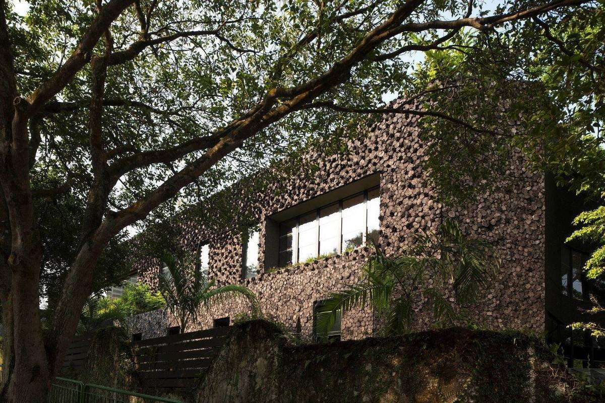 △ 融入了蘭花花盆的木炭外立面細(xì)節(jié)