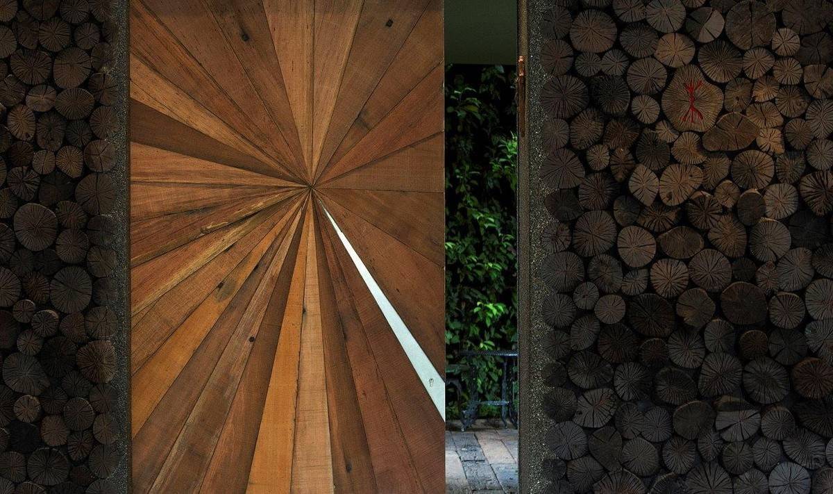 △ 由回收鐵路枕木做成的前門,印上木炭的房屋標(biāo)牌