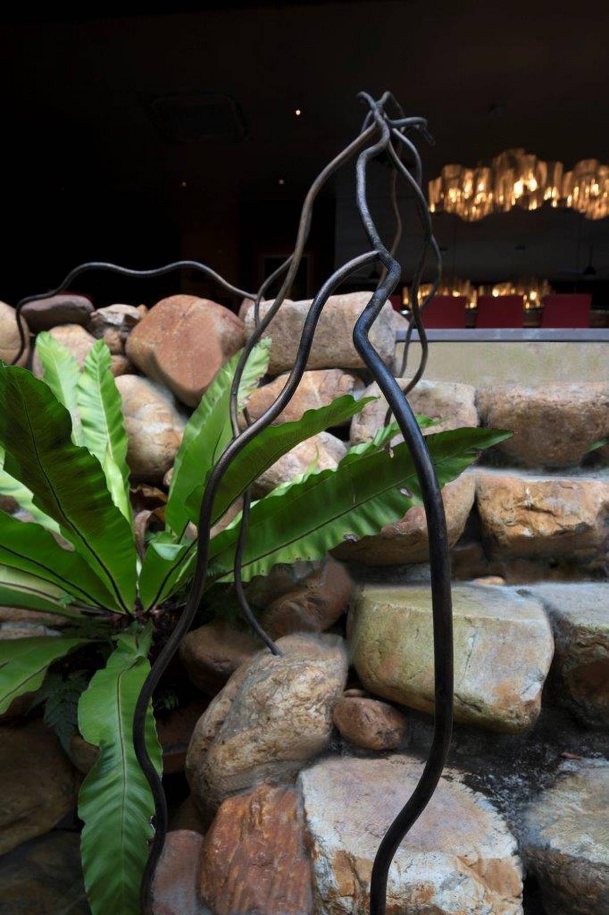△ 通往泳池下沉區(qū)的樓梯鋼筋扶手
