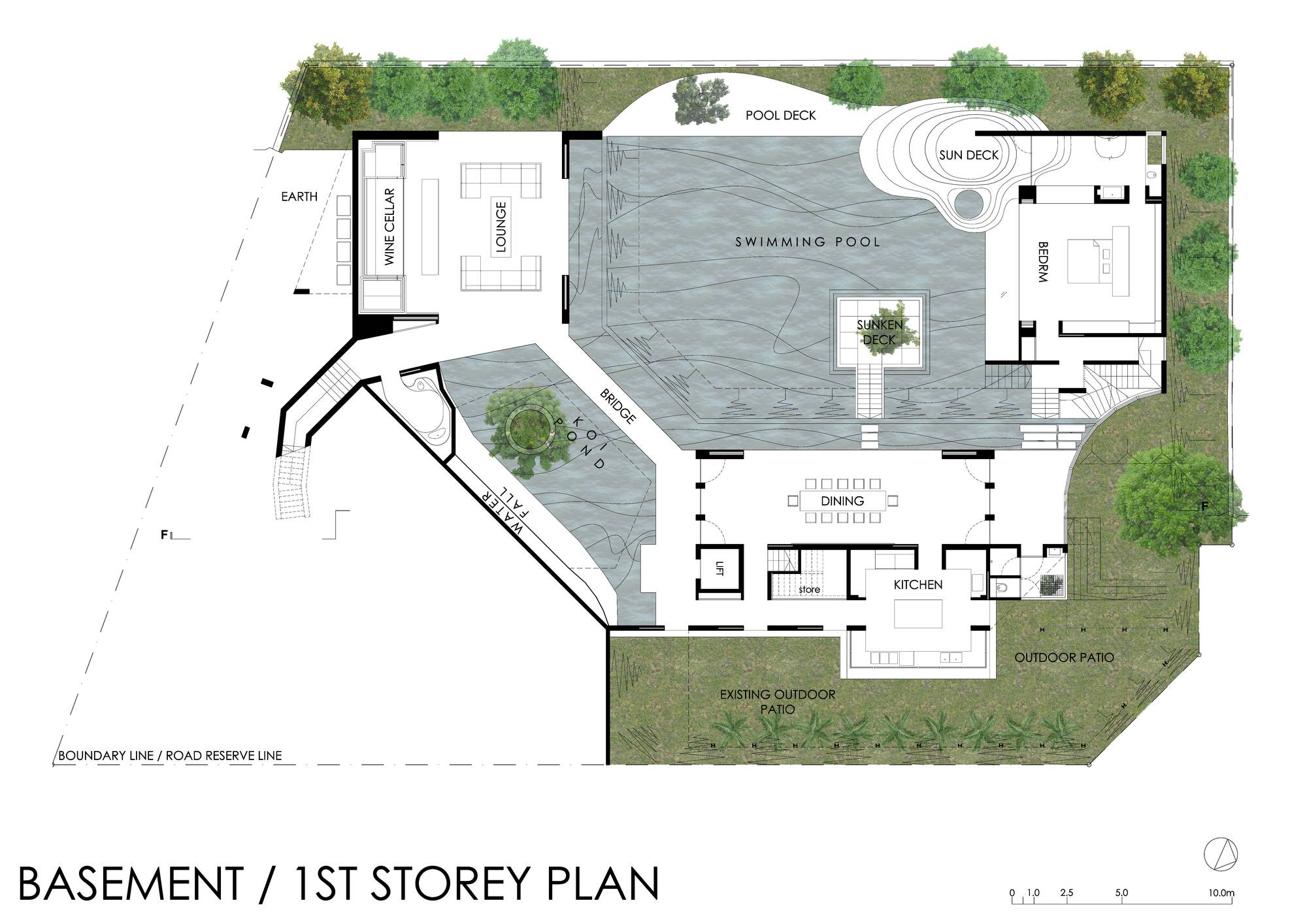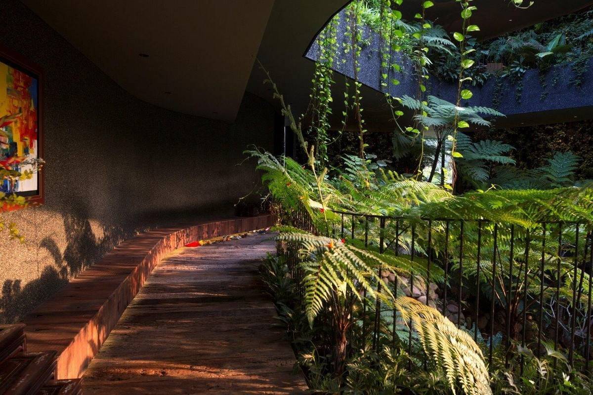 △ 游戲室視角,生物池流入一間臥室,并俯瞰著游戲室