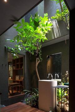 △ 休息天井,伴著瀑布的聲響,天窗和蔥郁的綠植迎接著訪客