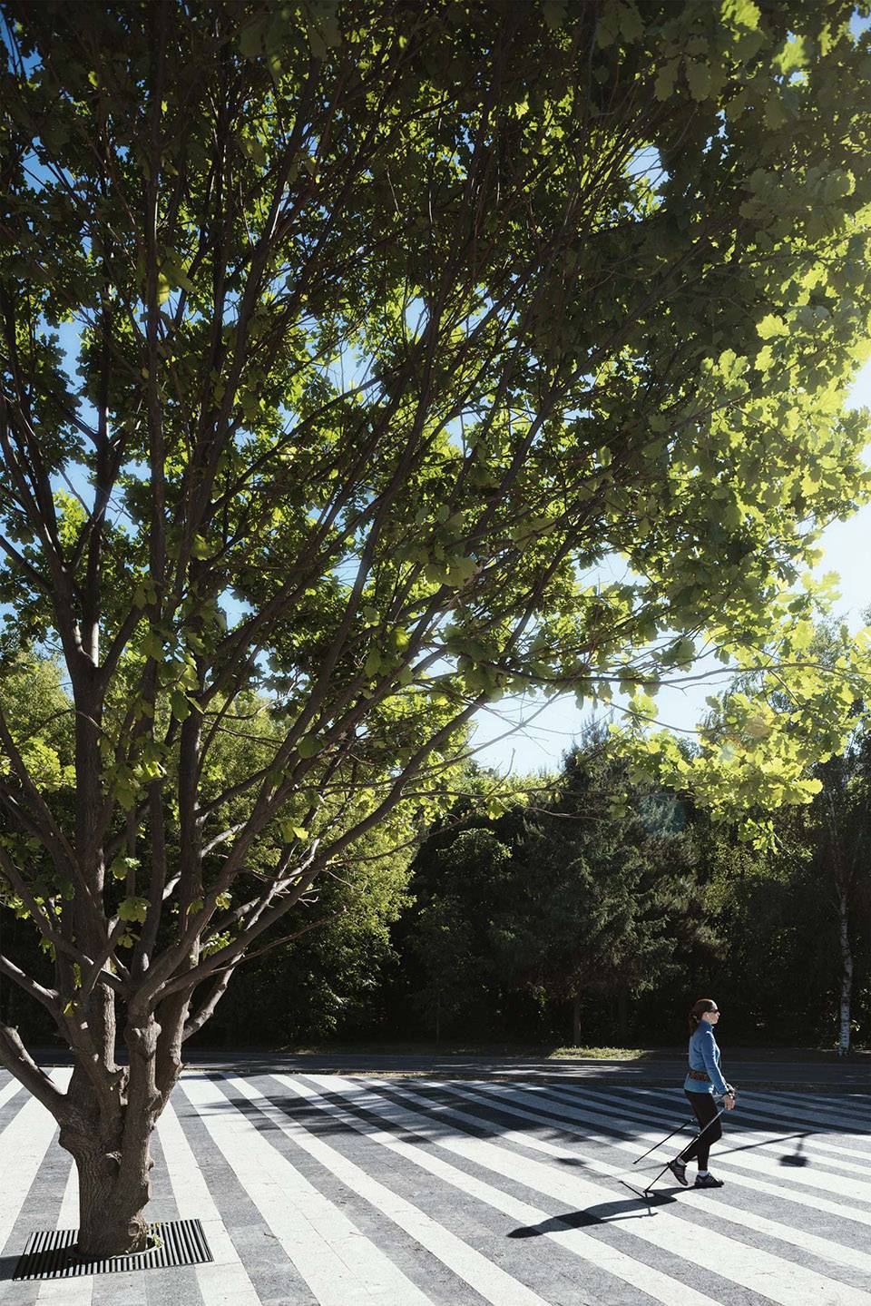 ▲蜿蜒的木質(zhì)小路為自行車騎行及嬰兒車的使用提供了便利條件