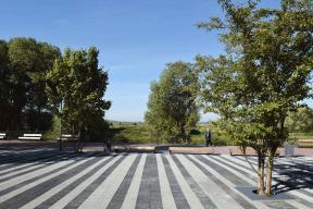 設(shè)計團(tuán)隊在地形變化復(fù)雜的河堤上營造出豐富多彩的景觀,是將場地缺點(diǎn)轉(zhuǎn)化為優(yōu)點(diǎn)的優(yōu)秀范例。
