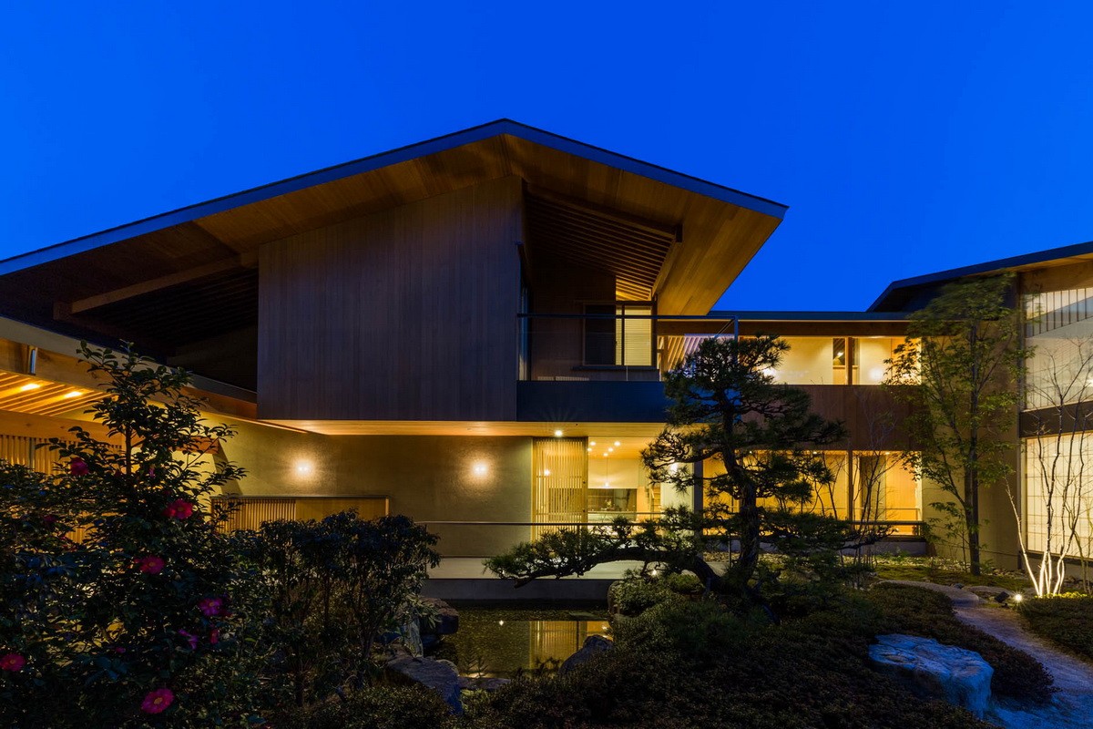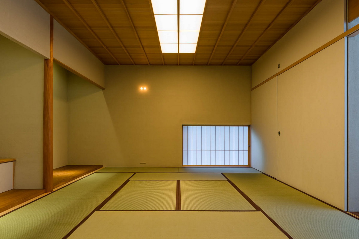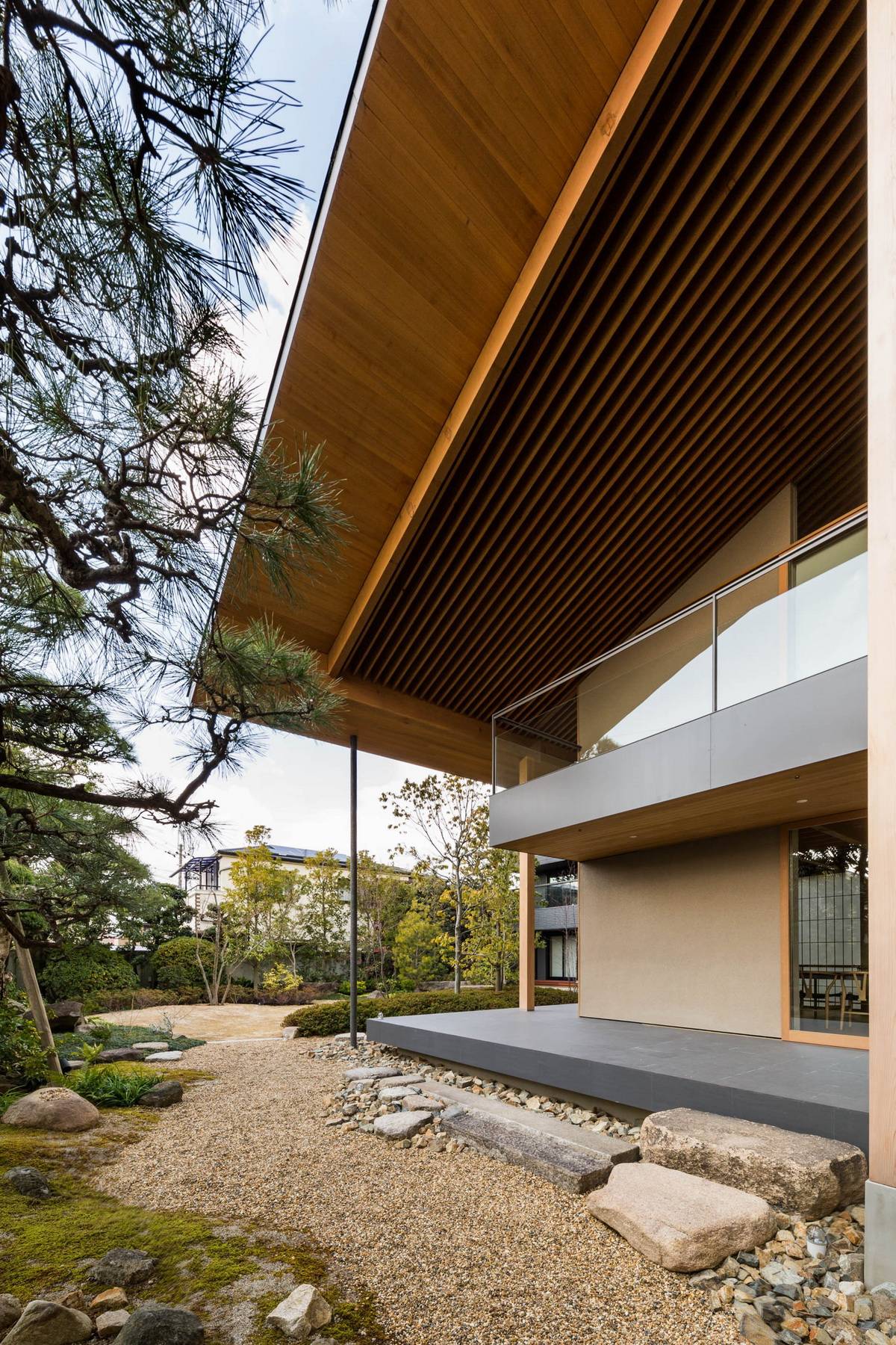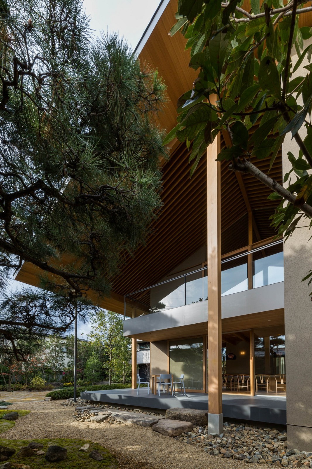 這是一對夫婦的住宅。場地位于大阪市郊。原有場地上有一座房齡達(dá)70年的老房子,但是本次業(yè)主要求我們拆除這座老房子,新建一座木結(jié)構(gòu)建筑。通常只有這對夫婦居住這棟房子,但也有很多機(jī)會與親友在此團(tuán)聚。無論是僅被該夫婦兩人居住,還是多人的團(tuán)聚,我們都是按照恰當(dāng)?shù)某叽绾凸才c私密空間的適度劃分來進(jìn)行設(shè)計。