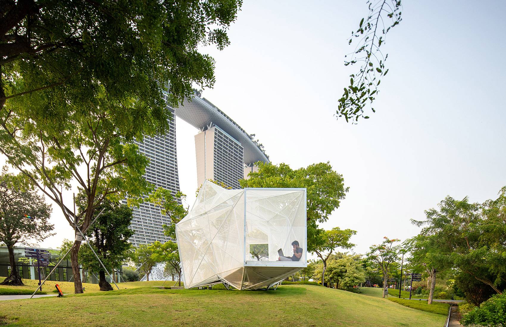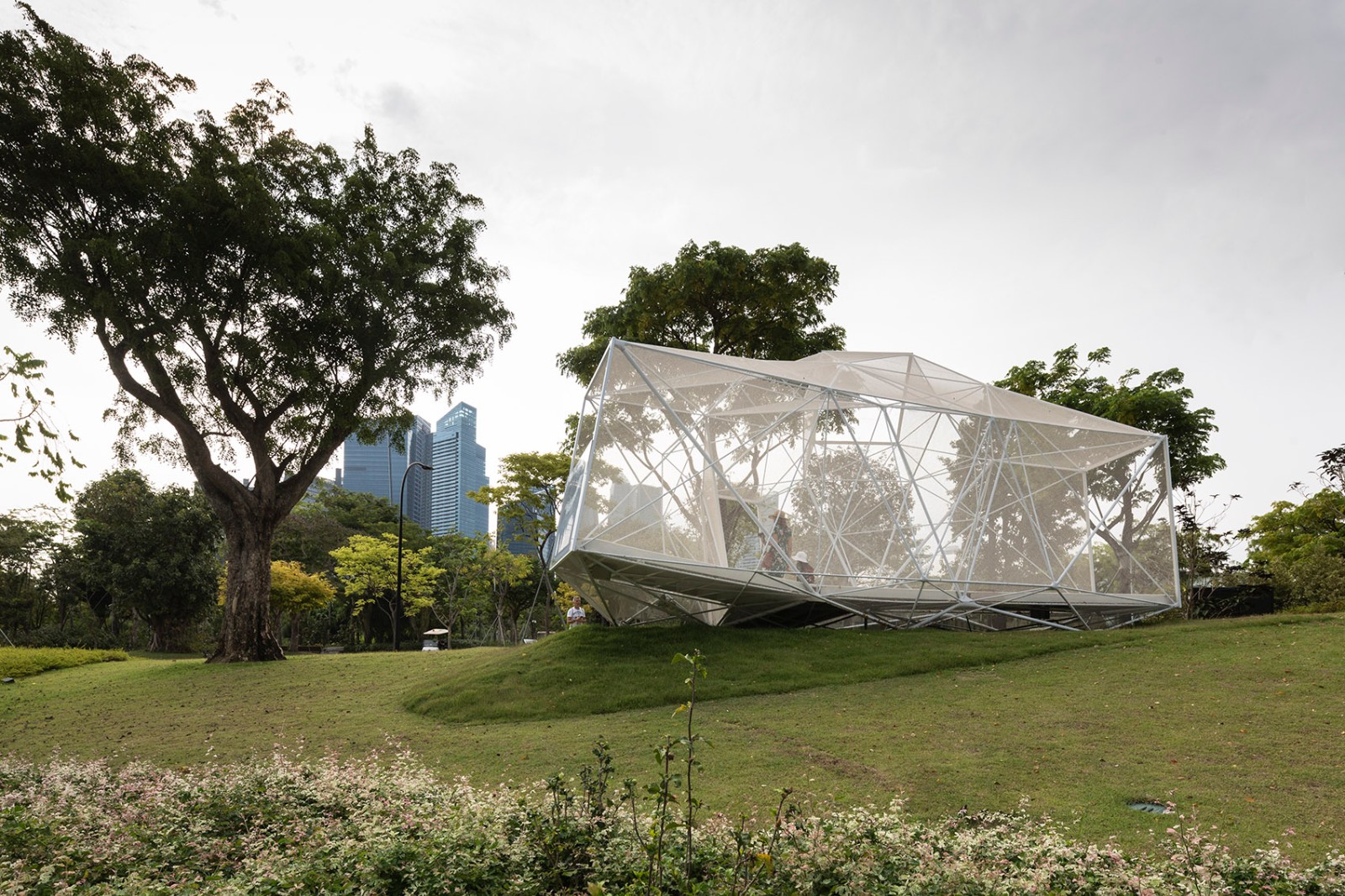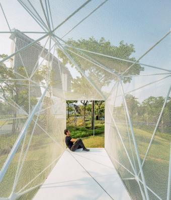 這座超輕型的涼亭坐落在濱海灣花園,它既是一個(gè)集會空間,也是一座輕盈的雕塑。設(shè)計(jì)遵循了歐洲設(shè)計(jì)規(guī)范(Eurocode),是新加坡建筑施工管理局(BCA)批準(zhǔn)建造的臨時(shí)3D打印結(jié)構(gòu)。同時(shí),在城市重建管理局(URA)的同意下,該結(jié)構(gòu)將在花園中停留至2022年底。