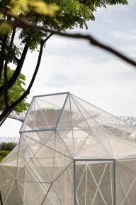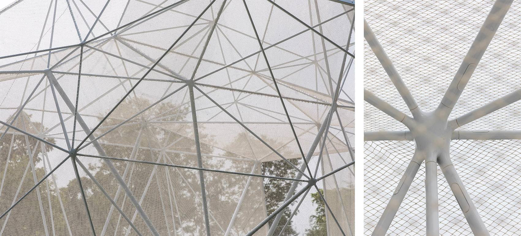 ▲涼亭由216個(gè)擁有不同長度和截面的桿體支撐